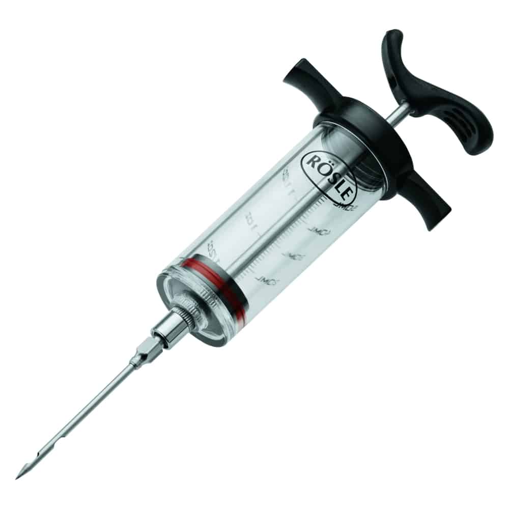 Marinada poate fi injectata direct in carne cu ajutorul acului, ceea ce duce la o aroma semnificativ mai intensa.