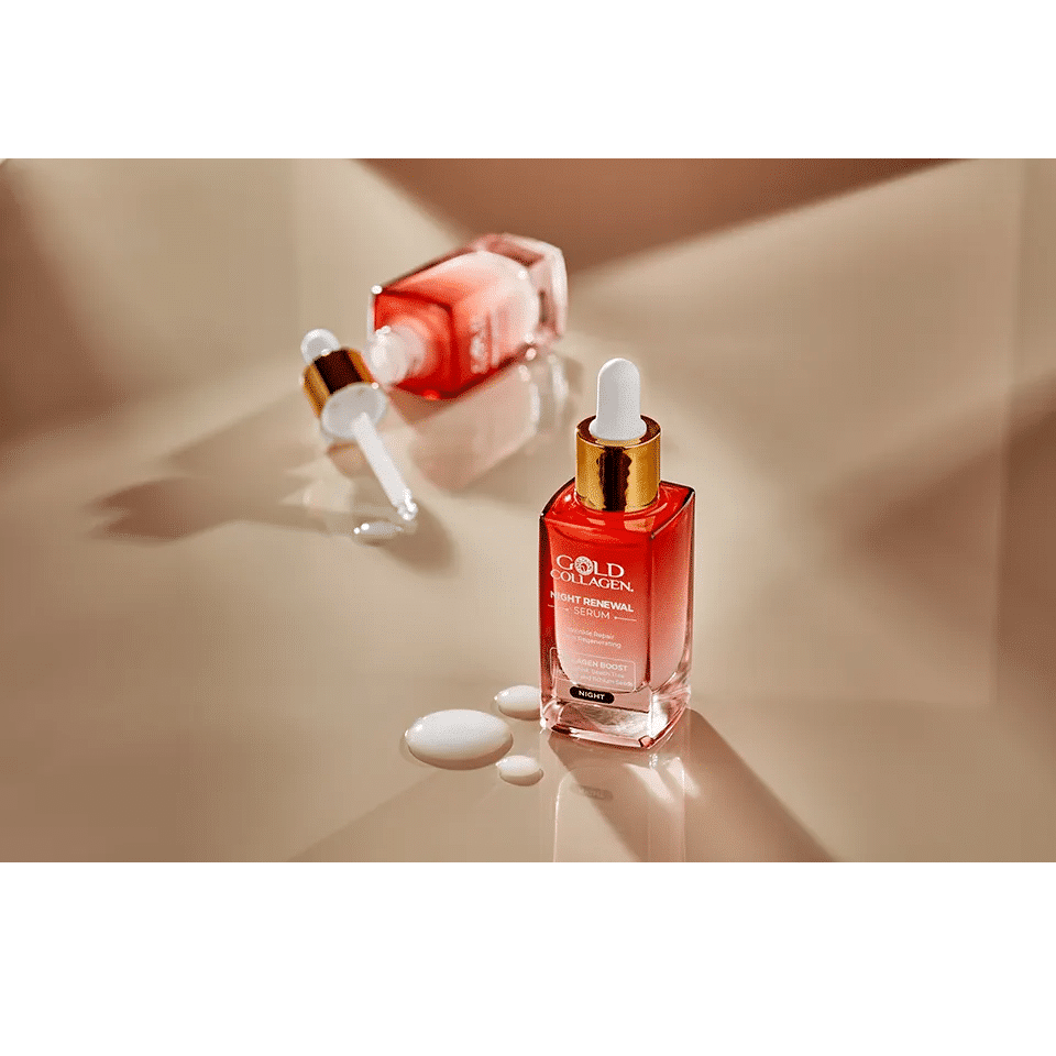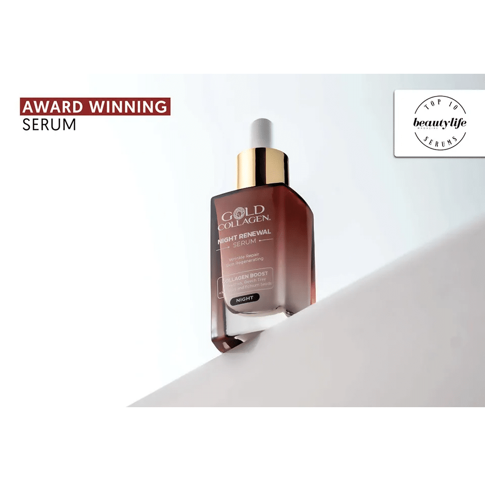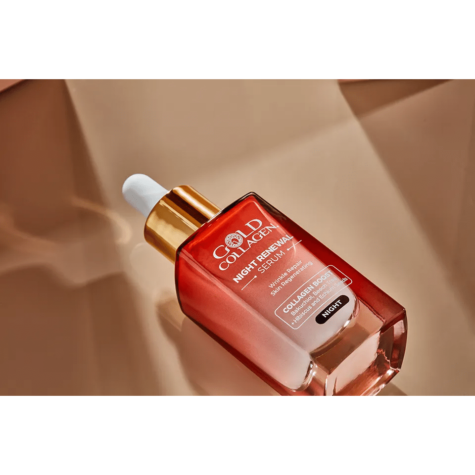 Factorii de stres zilnic de mediu, cum ar fi poluarea si lipsa de somn, va pot perturba pielea, ducand la semne premature de imbatranire. Serul Night Renewal, de la Gold Collagen, a fost dezvoltat pentru a intineri si a reinnoi pielea in timp ce dormi. Umplut cu Bakuchiol si Fag, care stimuleaza colagenul, cunoscute ca alternative naturale la Retinol, precum si cu seminte de Hibiscus si Echium, care stimuleaza productia de colagen si elastina si ajuta la prevenirea semnelor premature de imbatranire, reduce aspectul ridurilor si intareste bariera cutanata pe tot parcursul revolutiei celulare si protejeaza impotriva unui nuanta terna si neuniforma a pielii.