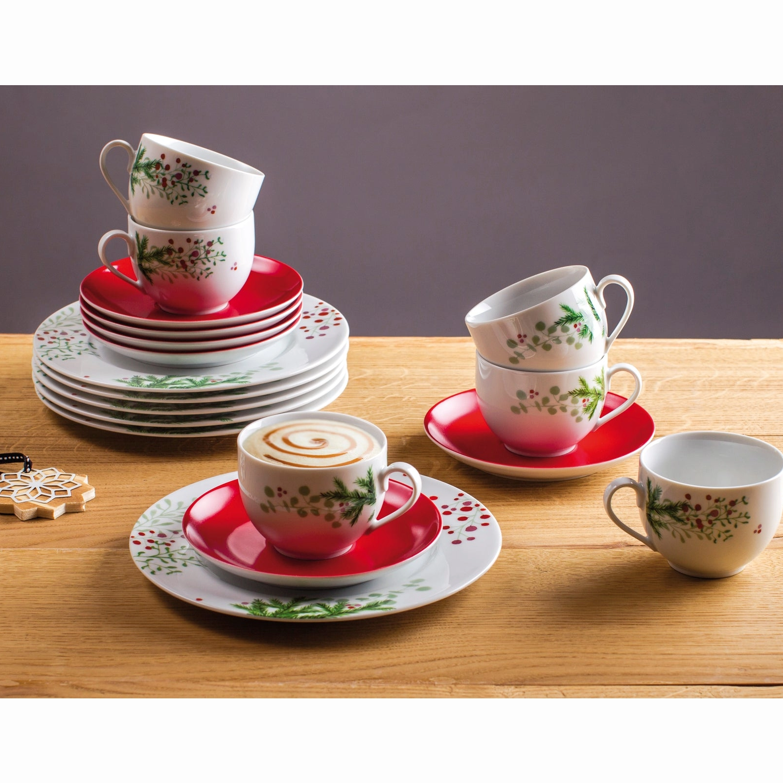 Setul pentru 6 persoane este format din: cesti pentru cafea (0.21 litri), farfurii mici (Ø15 cm) si farfurii medii (Ø21 cm).