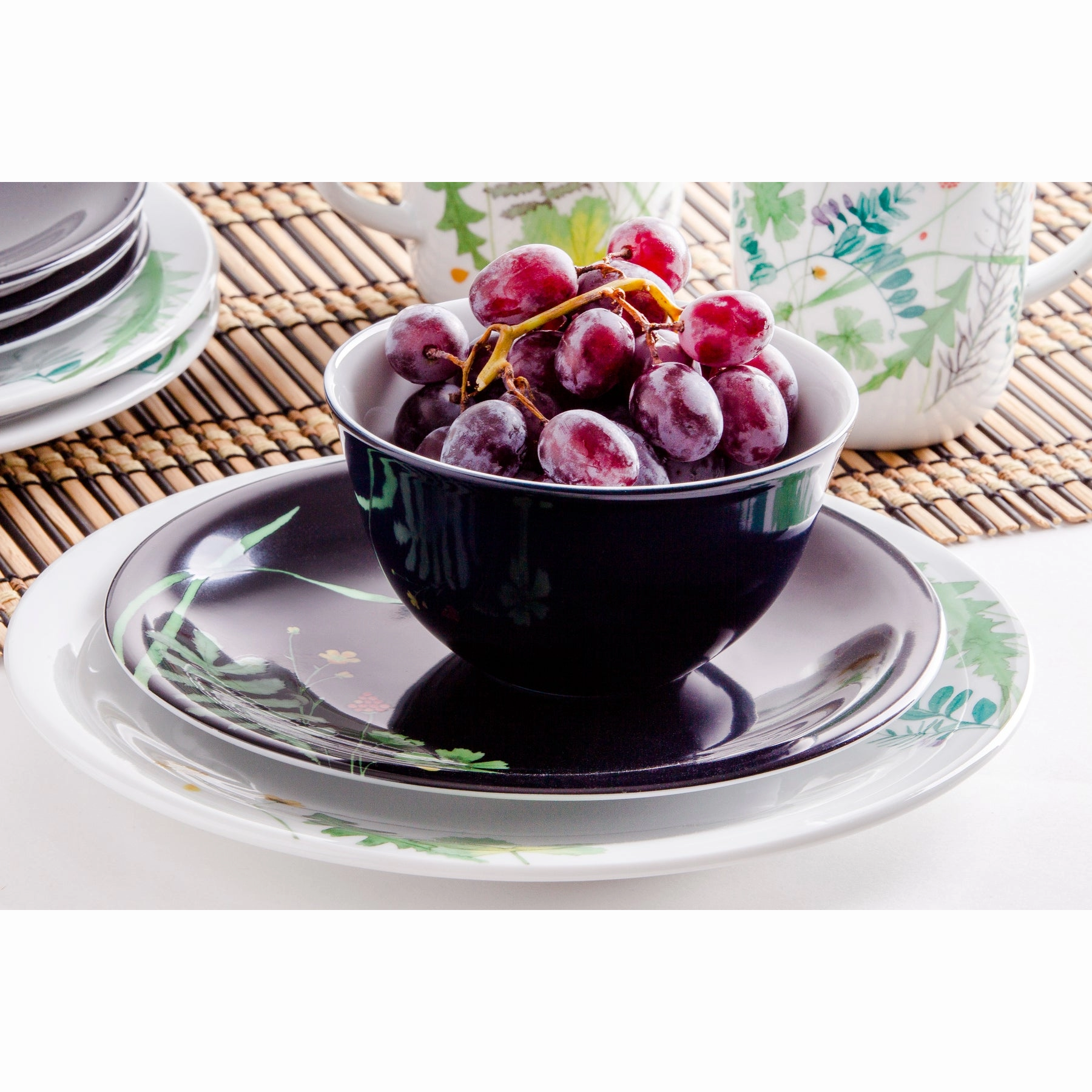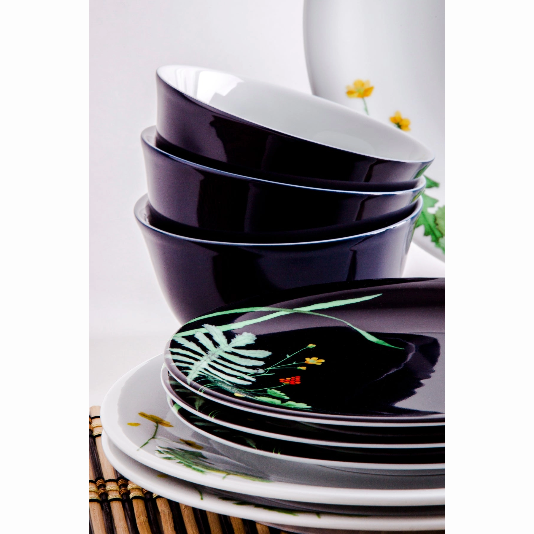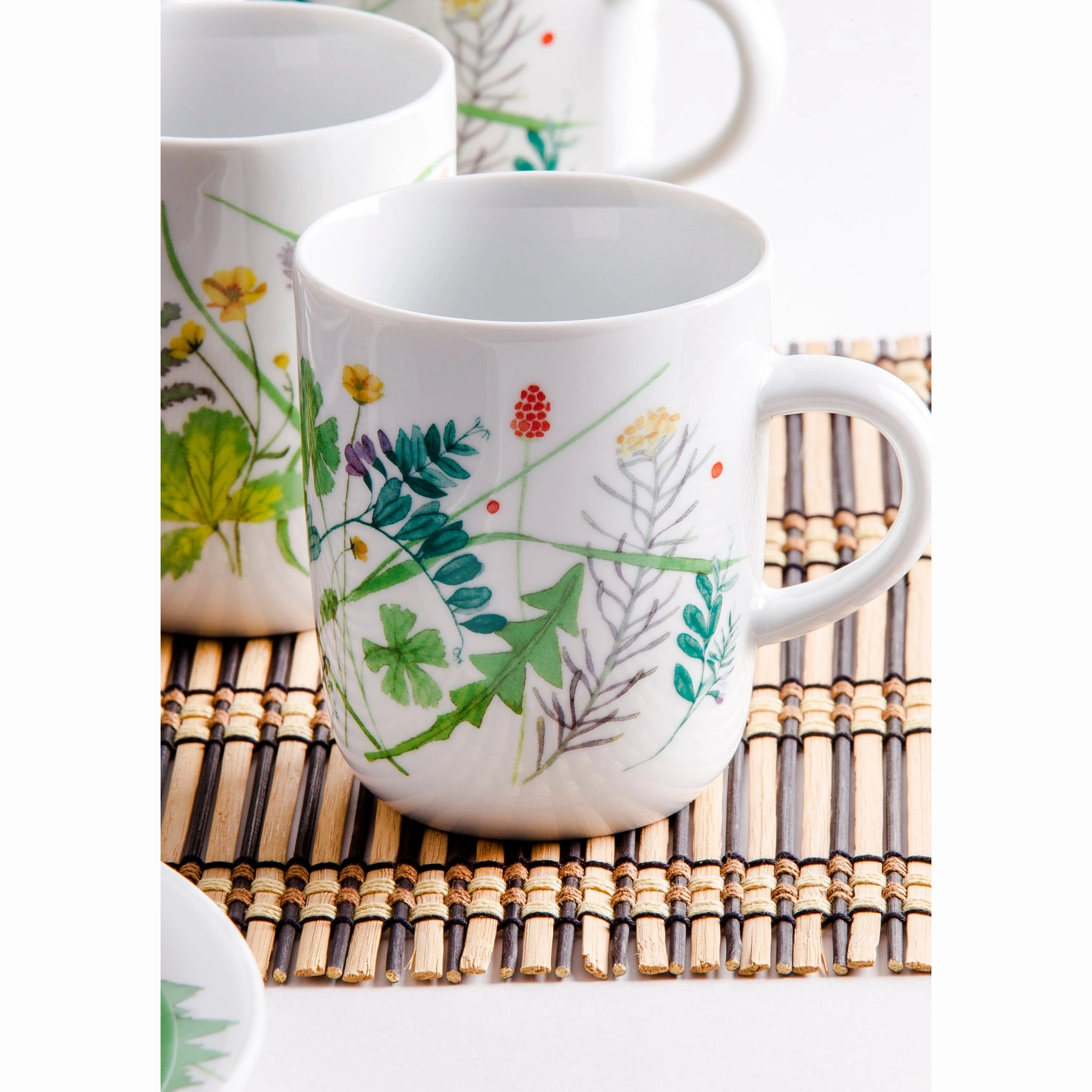 Setul pentru 4 persoane este format din: cani (0.35 litri), boluri (0.50 l), farfurii medii (Ø21.5 cm), farfurii pentru cina (Ø26.5 cm).