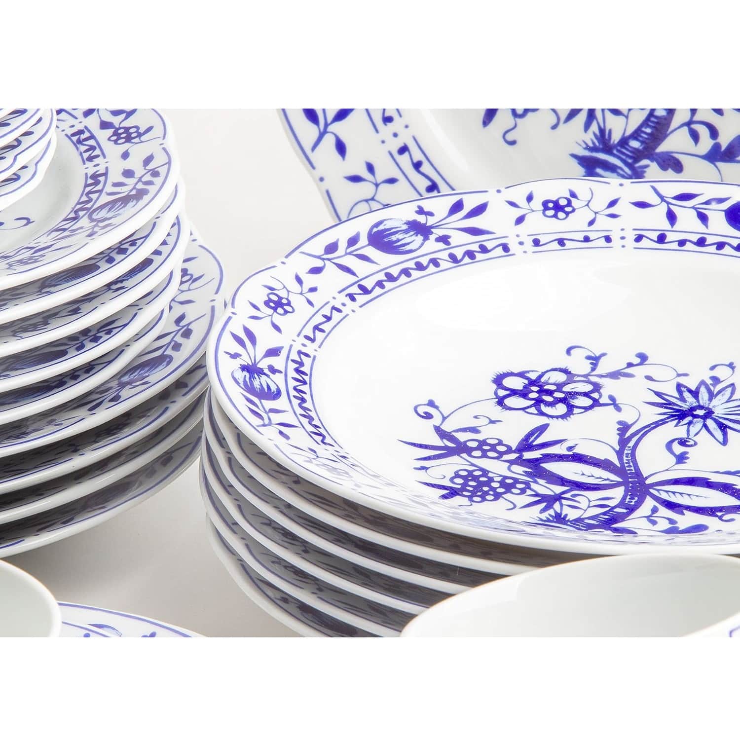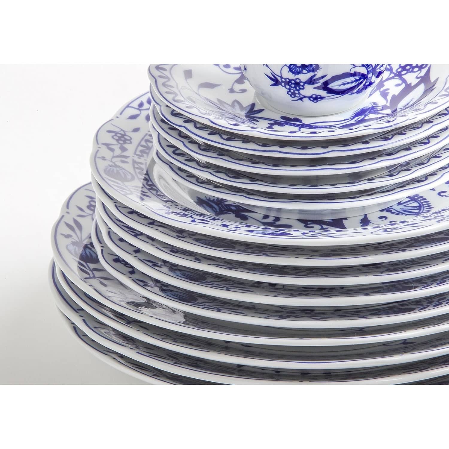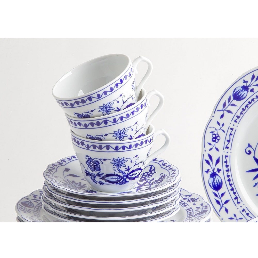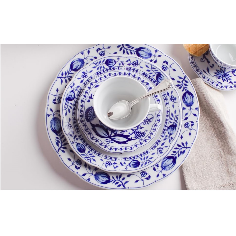 Colectia Onion Pattern este clasica, avand un model traditional ce nu se va demoda niciodata. Marginile dantelate ale farfuriilor Onion Pattern si modelul floral extrem de detaliat vor atrage toate privirile. Albastrul intens va infrumuseta orice aranjament al mesei, oferind eleganta.