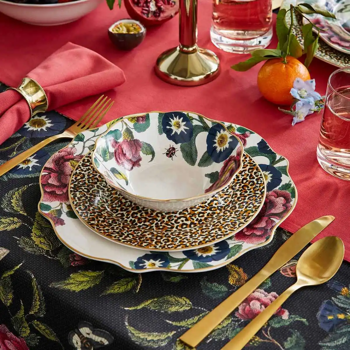 Setul Creatures of Curiosity, de la Spode England, este o alegere eleganta pentru servirea mesei, imbinand designul floral cu animal print, pentru un aspect opulent ce va eleva orice decor.
