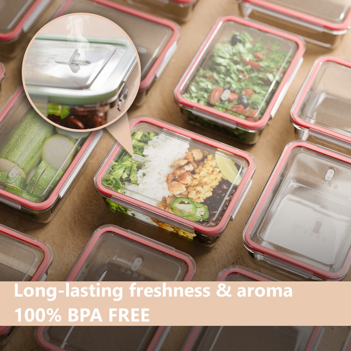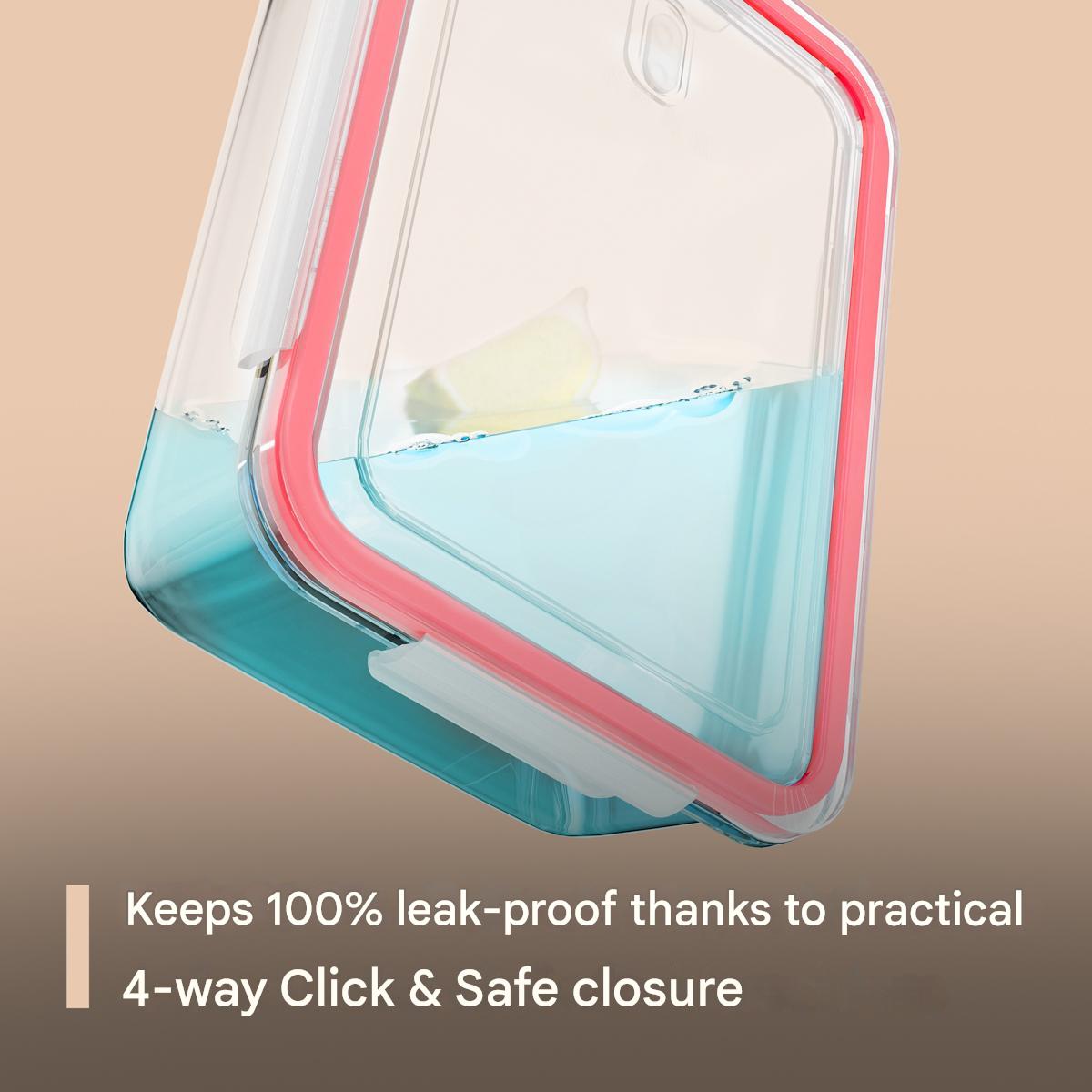 Gratie sistemului Click & Safe, caserolele se inchid ermetic, pastrand prospetimea si aroma pentru mult timp. Usor de manevrat si depozitat, se pot stivui, pentru a economisi spatiul. La congelator, sunt sigure de folosit pana la -40°C, iar la cuptor cu microunde rezista la temperaturi de pana la 110°C.