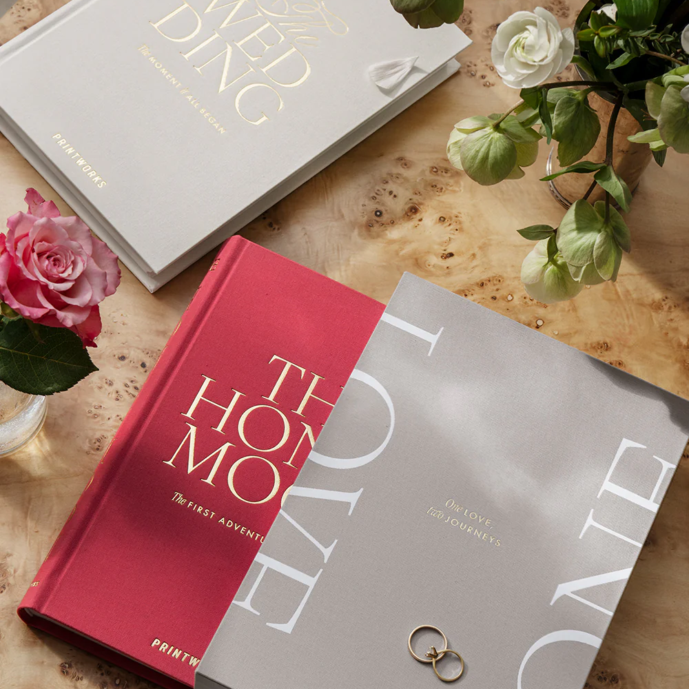 Albumele foto vor eleva incaperea in care le vei amplasa. Acest produs de la Printworks este modul perfect pentru a imortaliza amintirile, aventurile si provocarile de la nunta si din luna de miere. Setul cuprinde doua albume individuale, primul fiind dedicat zilei nuntii si emotiilor impartasite de miri si invitati, iar al doilea este dedicat perioadei pline de iubire si aventuri a lunii de miere.