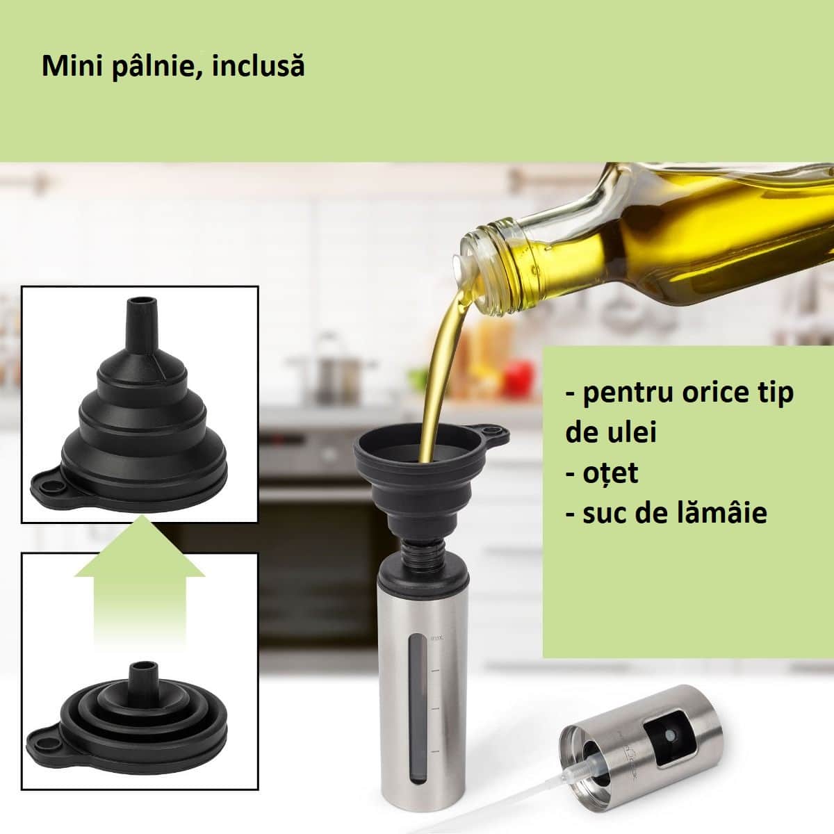 Ideal pentru ulei, otet, suc de lamaie/lime, sos soia, apa etc.