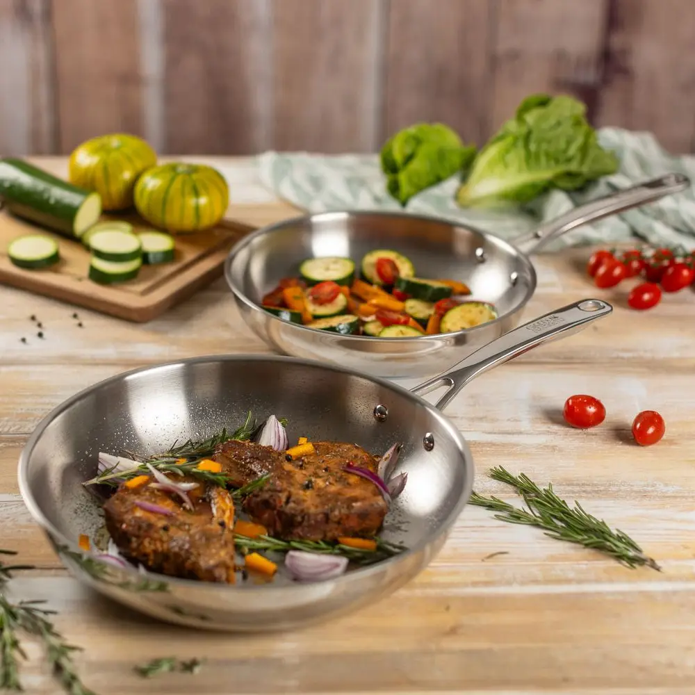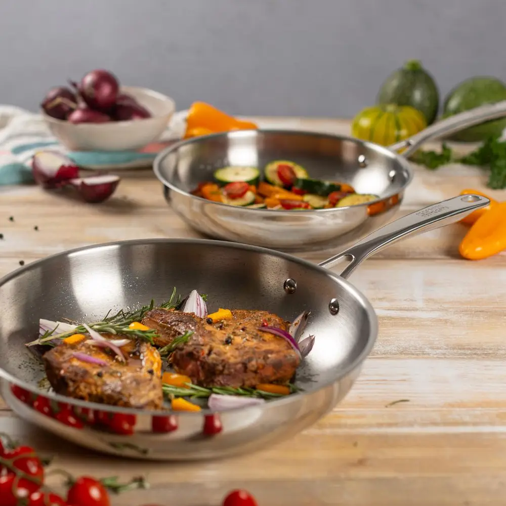 Tigaile pot suporta temperaturi de pana la 240°C, astfel ca le poti folosi pana si in cuptor pentru procesul de gatire lenta. Manerul ergonomic din otel inoxidabil este termorezistent si usureaza utilizarea tigailor atat in timpul prepararii mancarii dar si atunci cand sunt indepartate de pe sursa de caldura.