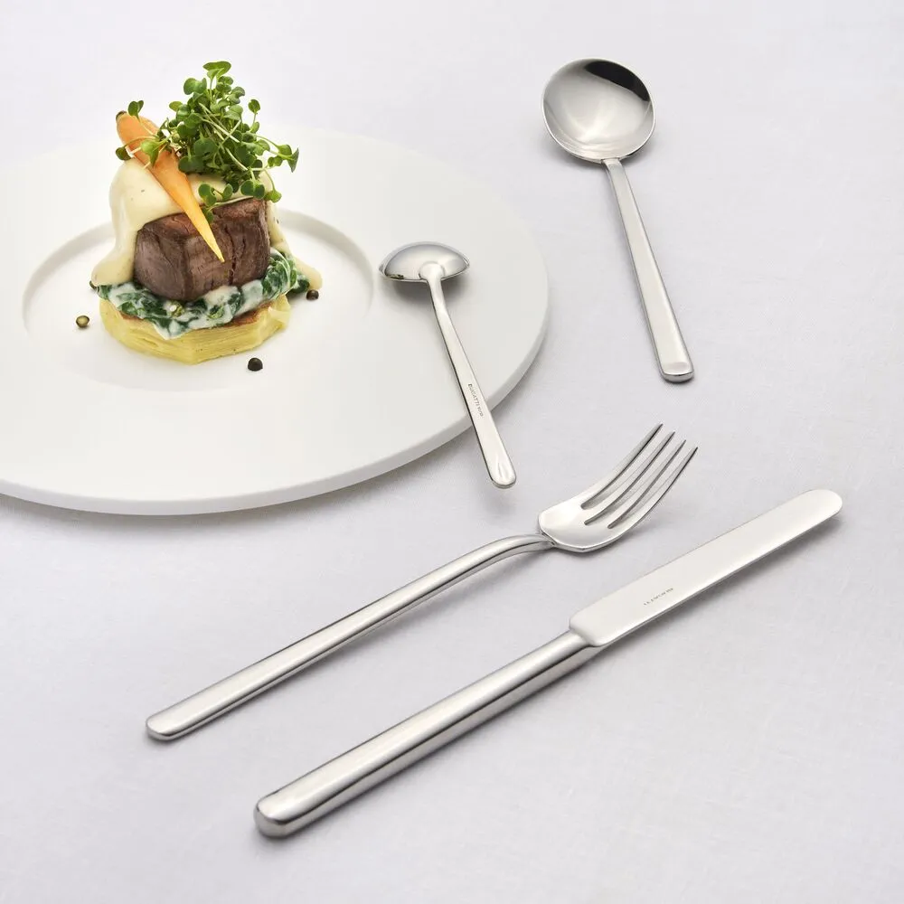 Designul robust, dar fin, ofera o prindere confortabila a tacamurilor si o prezentare vizuala excelenta. Acest set poate completa cu usurinta decorurile culinare minimaliste, cat si pe cele clasice, fiind accesibil pentru utilizare zilnica.