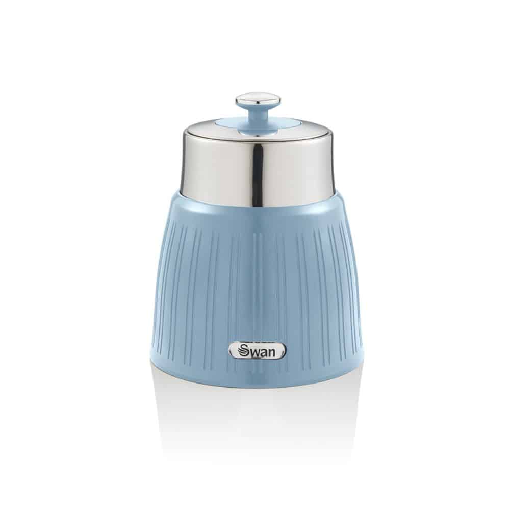 Pastreaza-ti mereu ceaiul, cafeaua si zaharul proaspete cu setul de trei recipiente de la Swan. Designul practic si elegant, cu dungi si capac cromat, adauga un stil retro cool in bucataria ta. Realizate din plastic durabil, cu interior din otel inoxidabil si inchidere ermetica aceste recipiente asigura prospetime maxima. Capacitatea de 1,2 litri te ajuta sa stochezi cantitati generoase de produse.