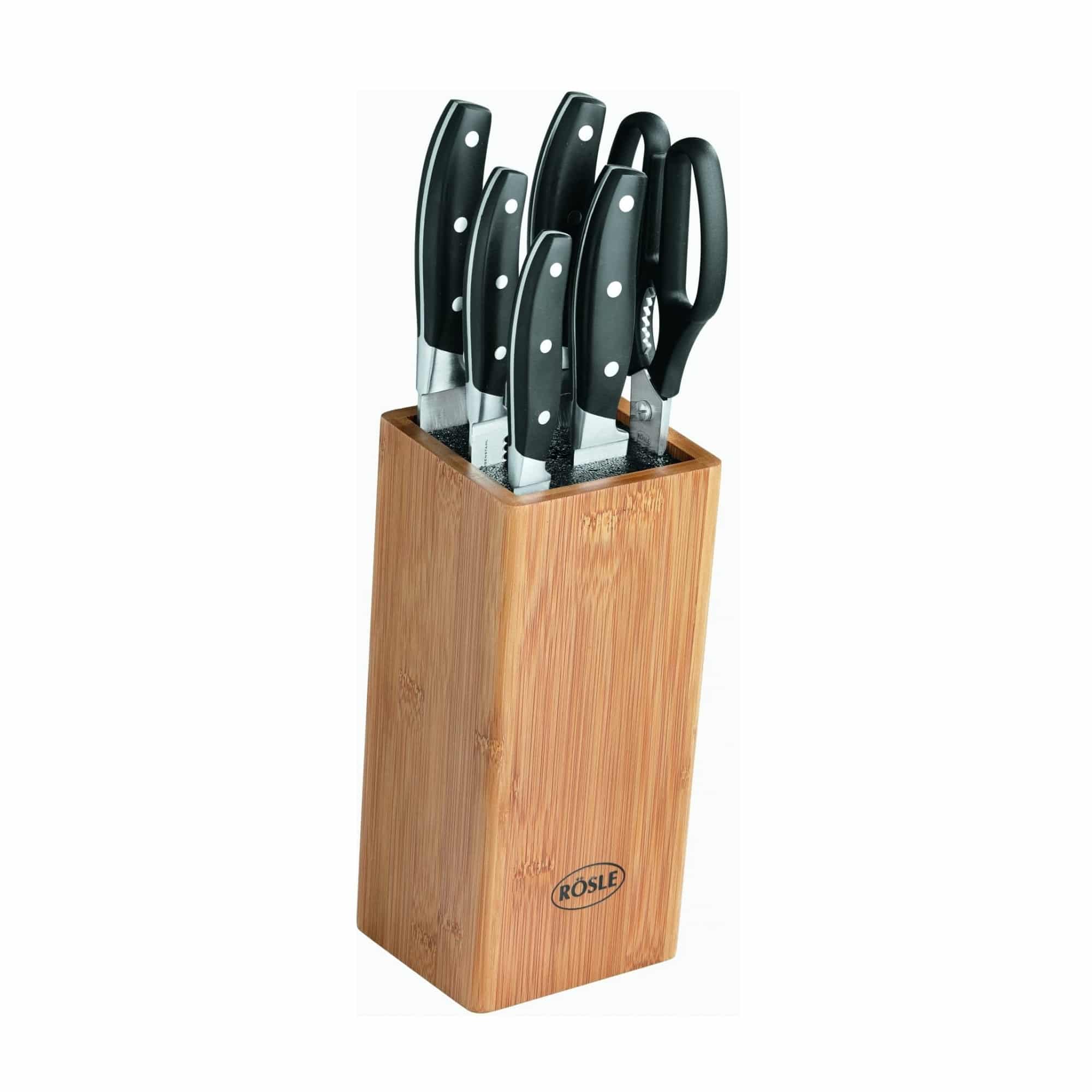 Setul de cutite de la Rösle este tot ceea ce aveti nevoie in bucataria dumneavoastra! Setul, fabricat din materiale premium in Germania, include: cutit universal, cutit pentru legume, cutit pentru feliere, cutitul bucatarului, cutit de paine si foarfeca de bucatarie.