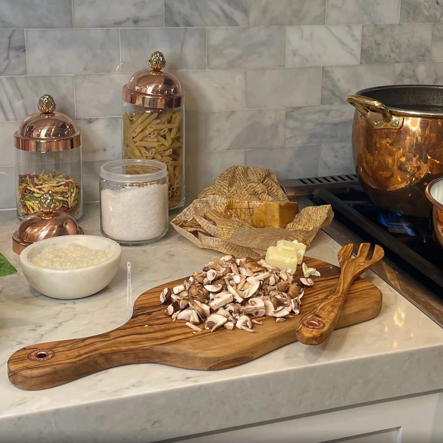 Ustensilele de bucatarie Olivewood sunt realizate manual din lemn de masline, un material apreciat pentru durabilitate si aspectul sau unic. Fiecare piesa este sculptata si finisata cu grija, avand o agatatoare din cupru cu semnatura Ruffoni.