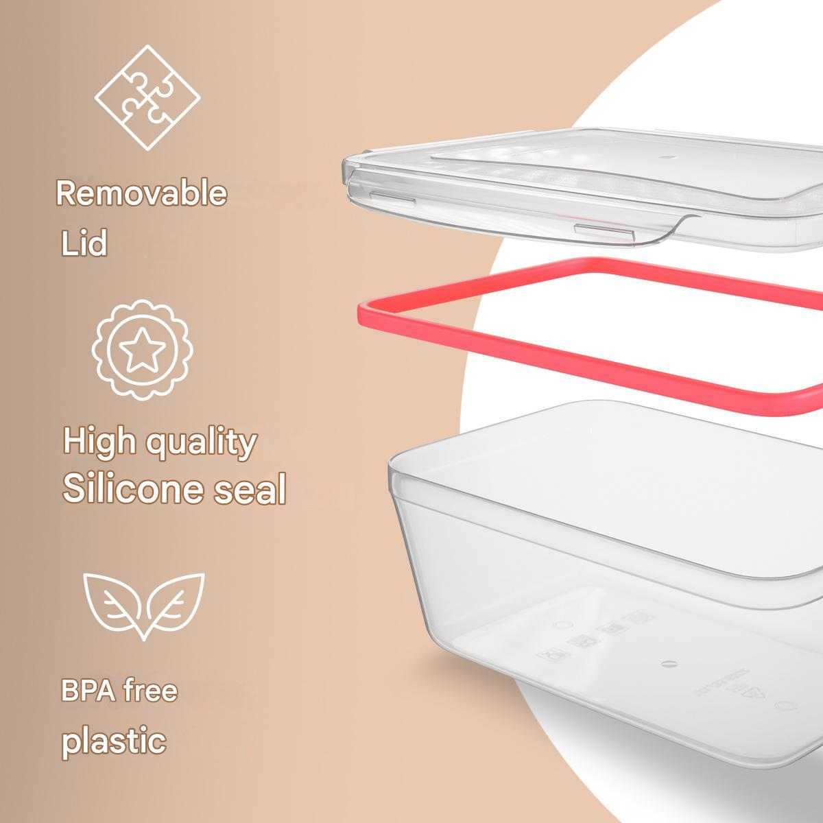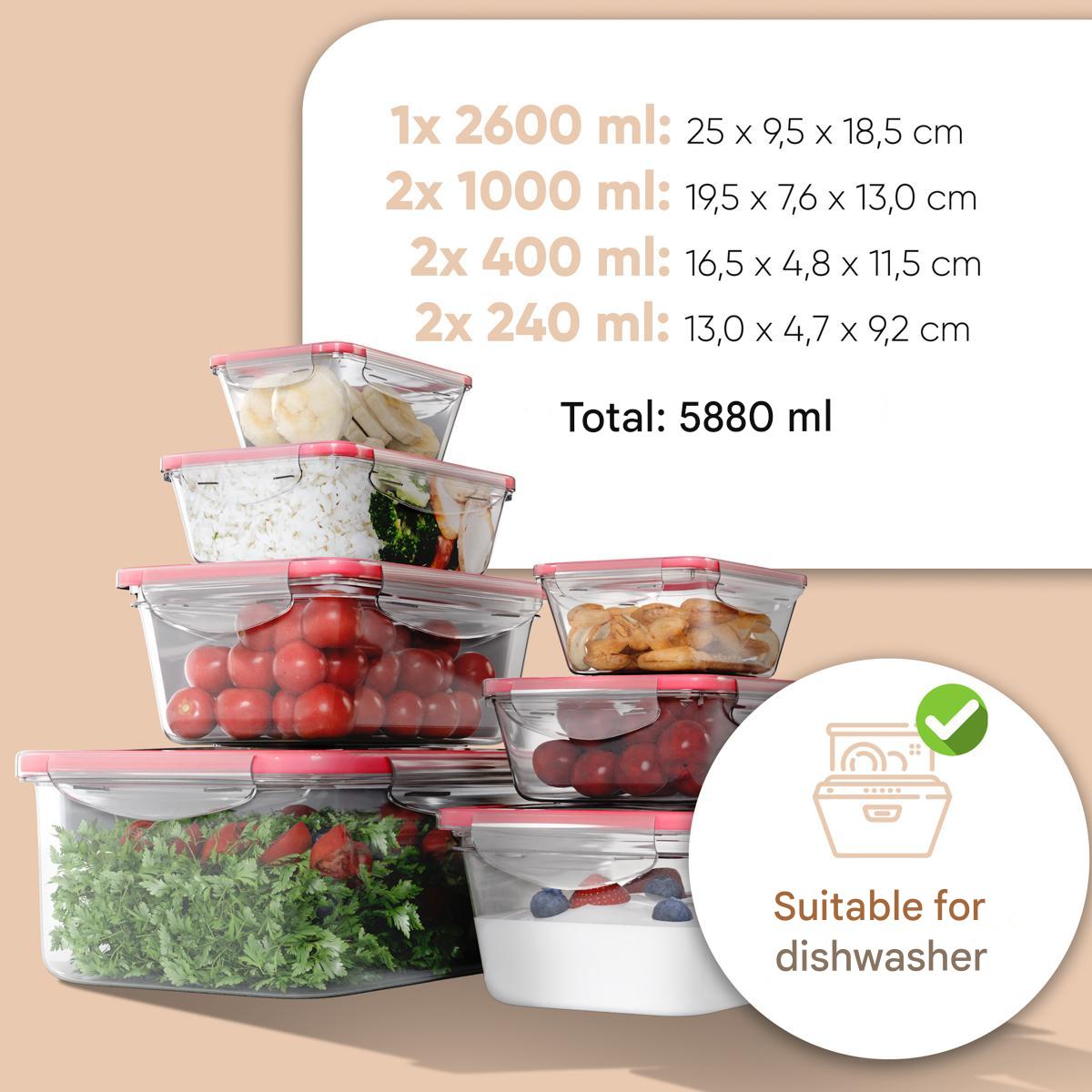 Set de 7 caserole ideale pentru congelarea, incalzirea, stocarea si transportarea fructelor, legumelor si a mancarurilor gatite. Materialul de fabricatie nu contine BPA, ceea ce le face sigure inclusiv pentru depozitarea si transportul mancarurilor pentru bebelusi.