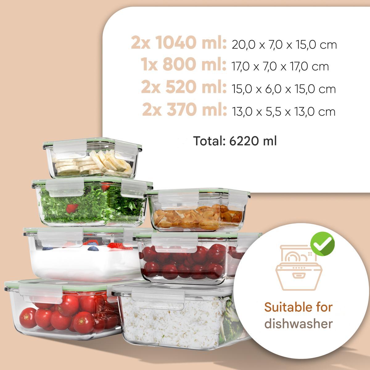 Setul de 7 caserole din sticla cu capac, de la brandul german Classbach, este ideal pentru congelarea, incalzirea, stocarea si transportarea fructelor, legumelor si a mancarurilor gatite.