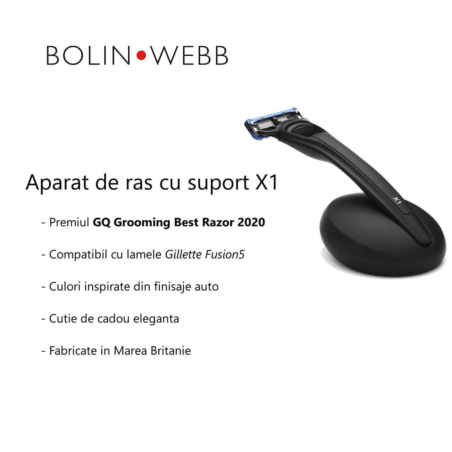 Suportul magnetic inovator ofera un cadru remarcabil si practic pentru aparatul de ras X1, evidentiind astfel accentul pus de Bolin Webb pe design si performanta. Acesta are o finisare satinata in partea de sus si o baza din silicon cu strat de elastomer pentru o aderenta sigura.