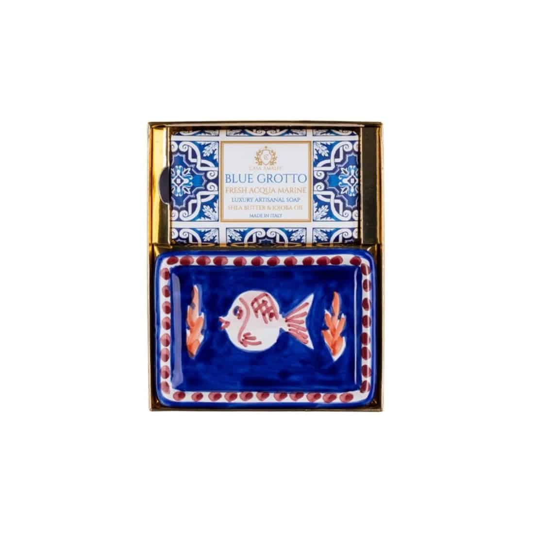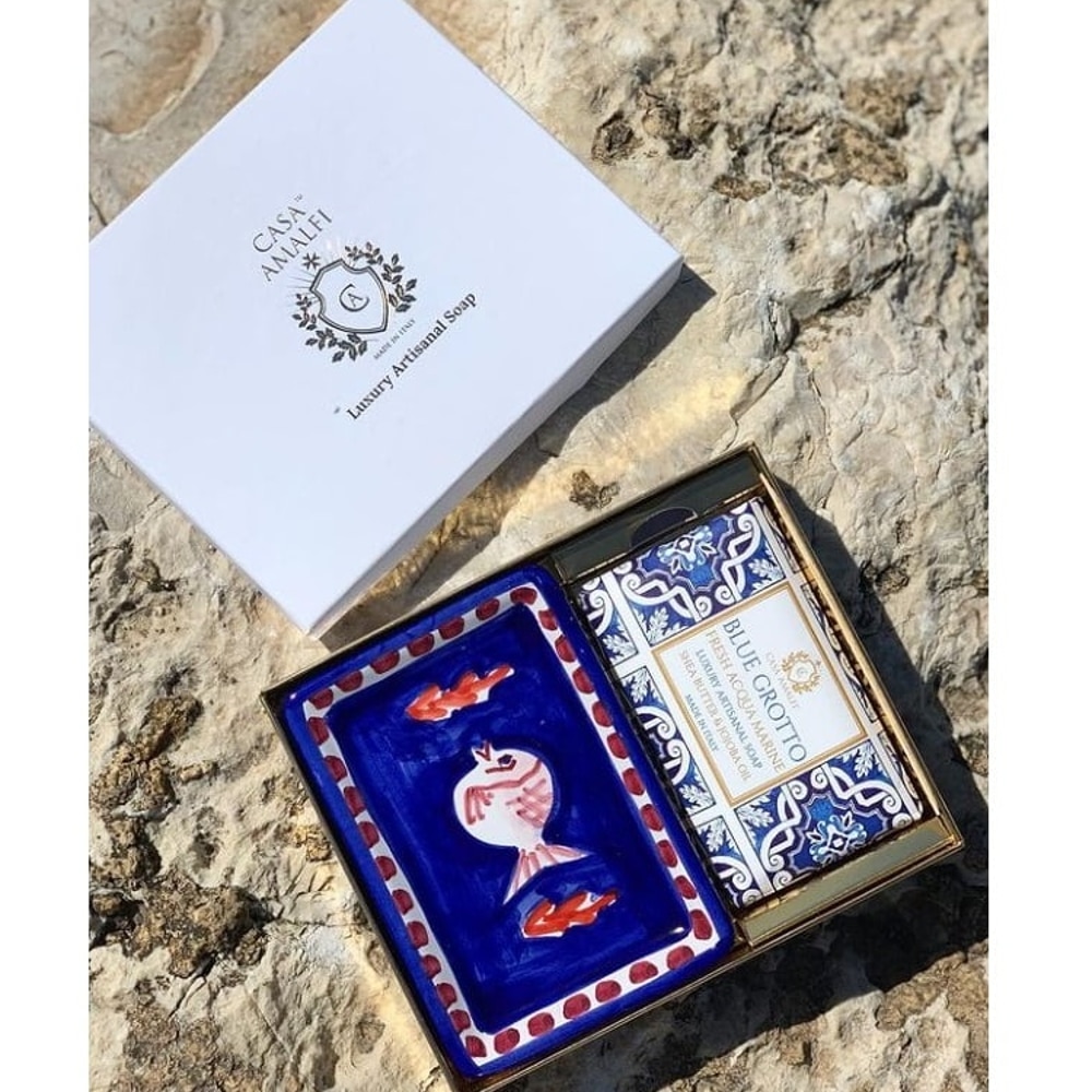 Setul cadou White&Gold, de la brandul italian Casa Amalfi, contine un sapun de corp si o superba sapuniera din ceramica pictata manual, realizata de artizani in Vietri Sul Mare (Italia), totul ambalat intr-o cutie eleganta.