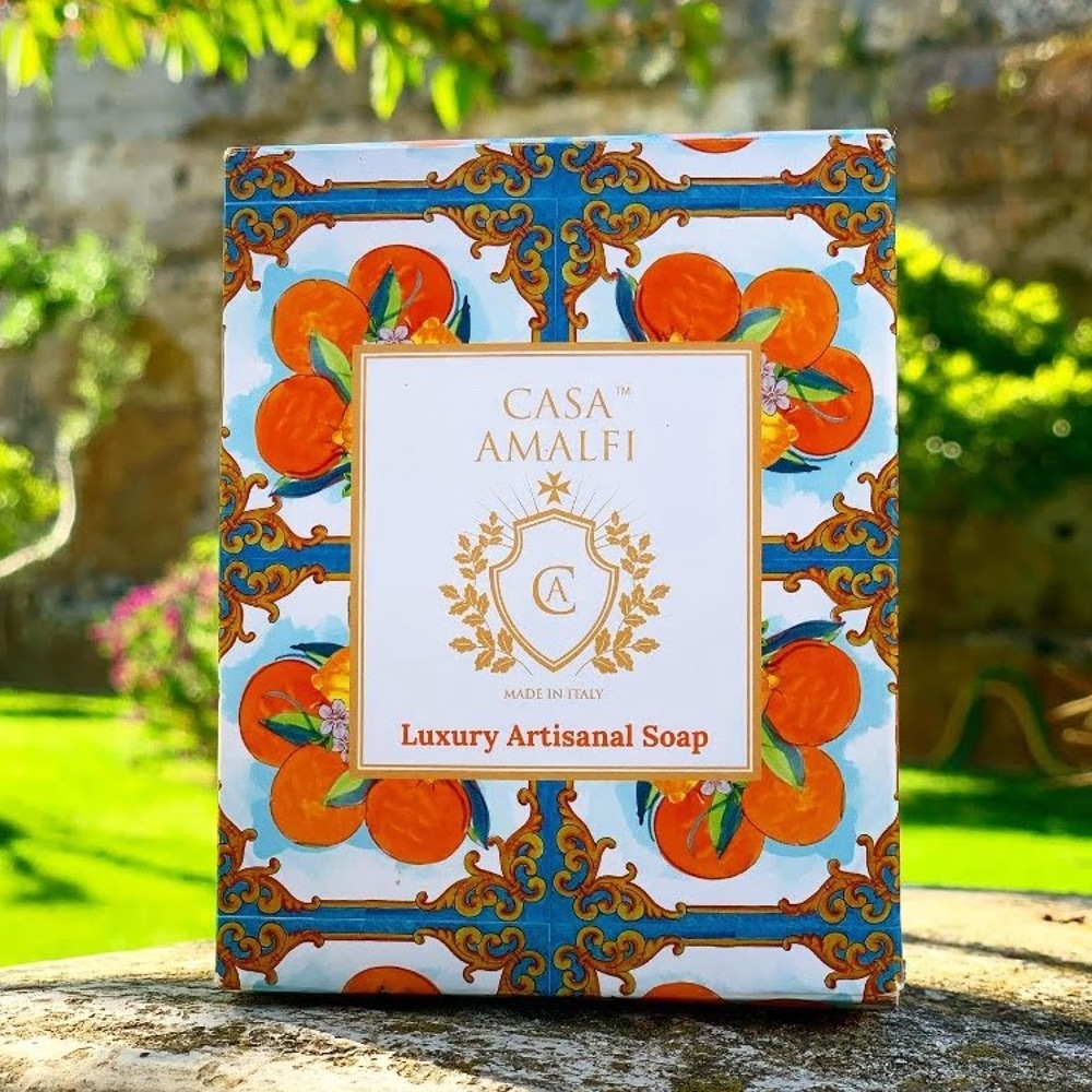Setul cadou Summer in Sorrento, de la brandul italian Casa Amalfi, contine doua sapunuri de corp si un sapun exfoliant, realizate de artizani in Italia, totul ambalat intr-o cutie eleganta, in stilul maiolica.