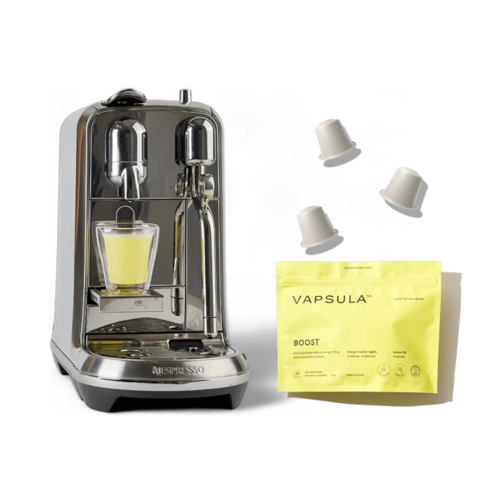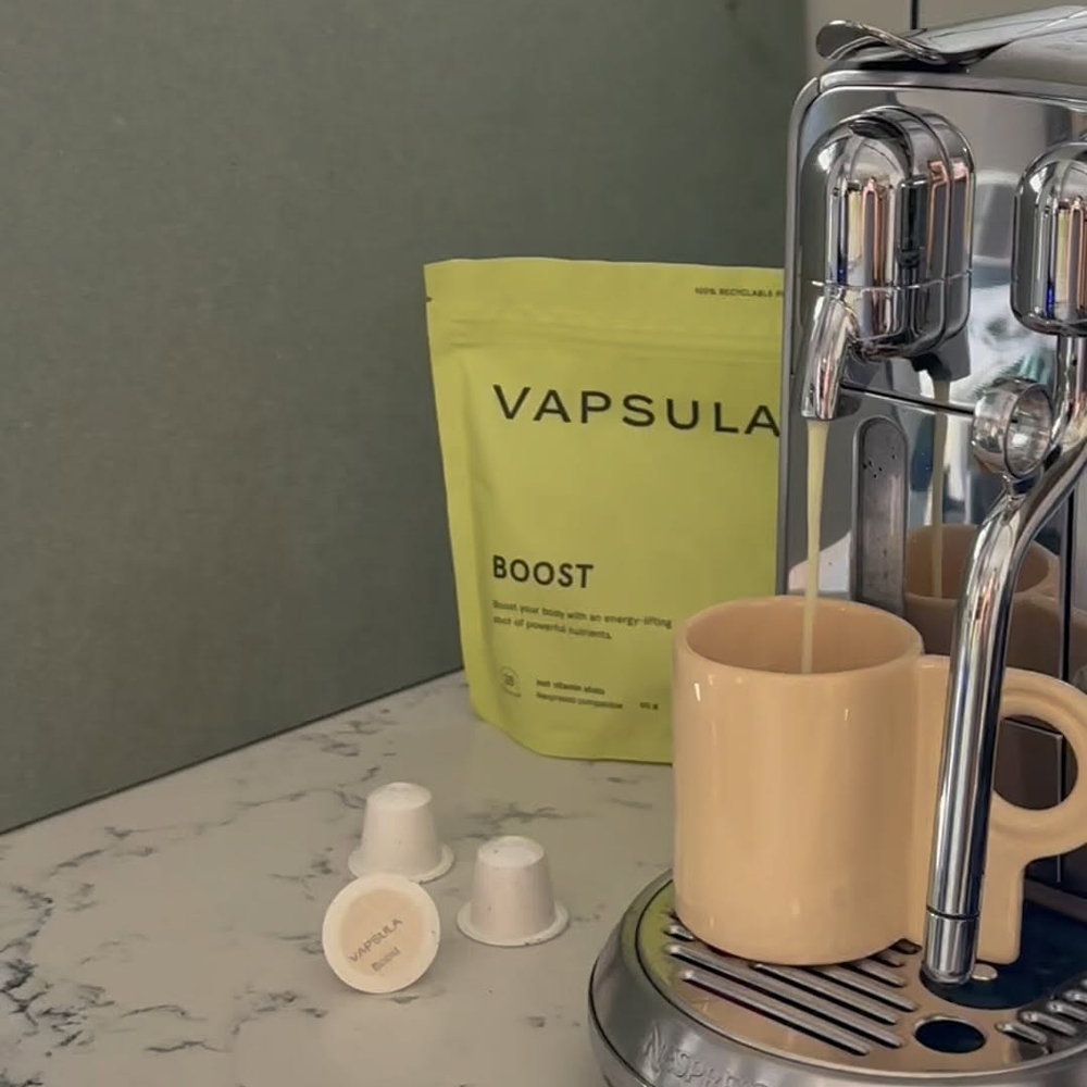Descopera capsulele tip Nespresso cu vitamine BOOST, de la brandul francez Vapsula, ce fac administrarea de suplimente alimentare mai usoara si mai delicioasa ca niciodata, fiind concentrate intr-o forma practica, compacta si concentrata. Capsulele premium BOOST sunt formulate cu ingrediente naturale, avand in componenta guarana si un complex de vitamina B cu efect revitalizant.
