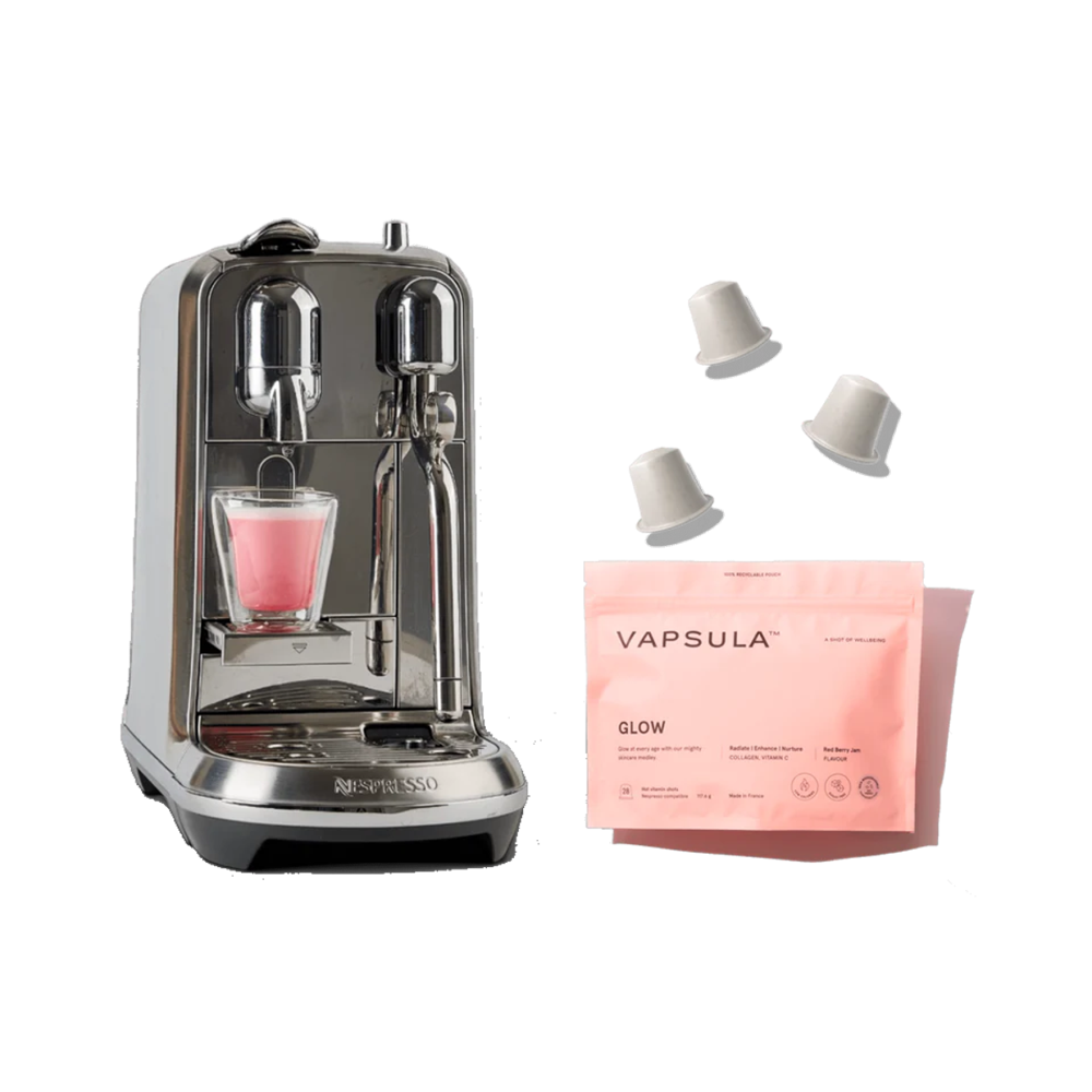 Descopera capsulele tip Nespresso cu vitamine GLOW, de la brandul francez Vapsula, ce fac administrarea de suplimente alimentare mai usoara si mai delicioasa ca niciodata, fiind concentrate intr-o forma practica, compacta si concentrata. Capsulele premium GLOW sunt formulate cu ingrediente naturale, avand in componenta colagen si vitamina C, ce redau elasticitatea si fermitatea tenului.