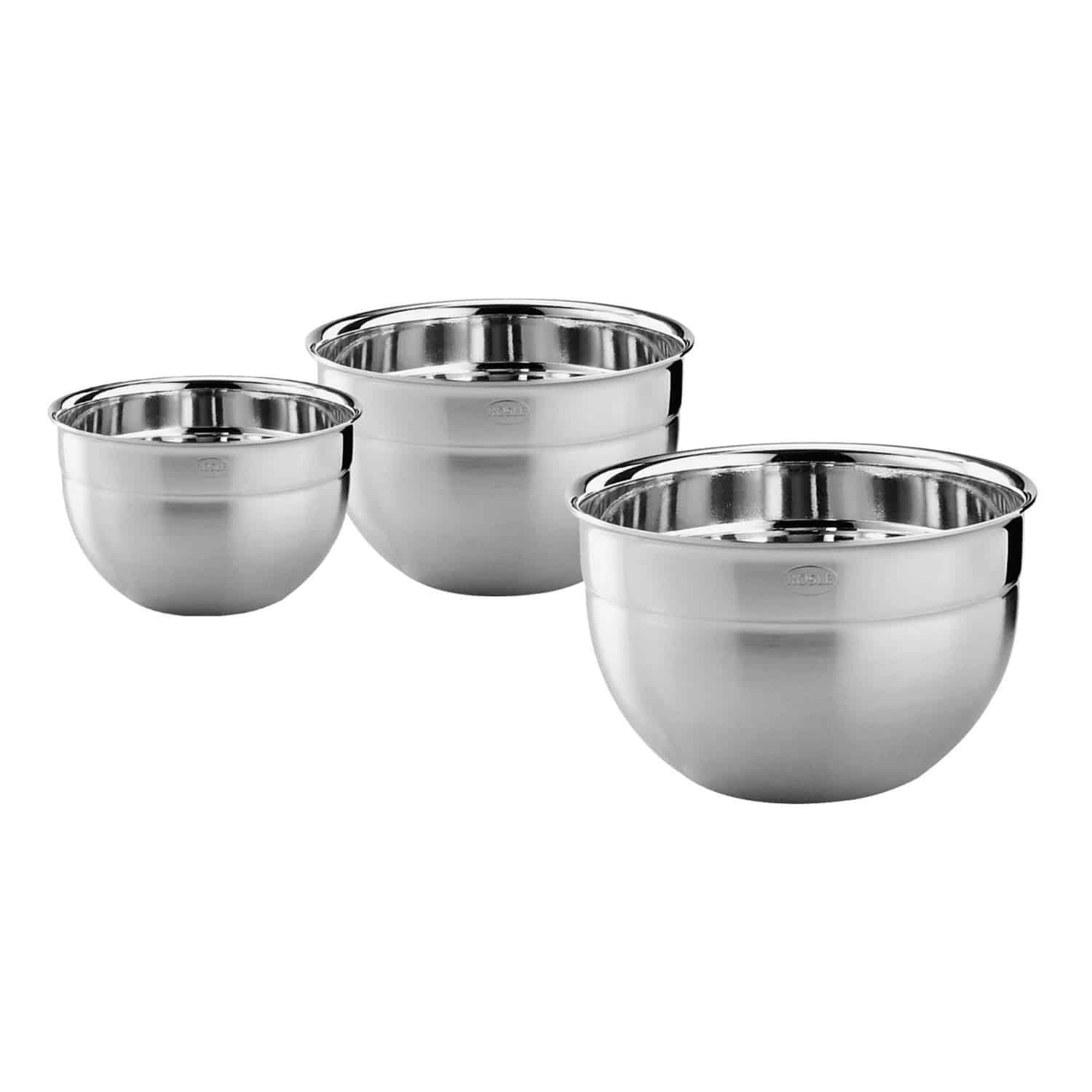 Boluri elegante, care se potrivesc pentru servirea la masa, precum si pentru prepararea si depozitarea alimentelor. Fabricate din otel inoxidabil mat, cu o grosime de 1mm. Cu acestea puteti prepara, servi dar si depozita alimentele.
