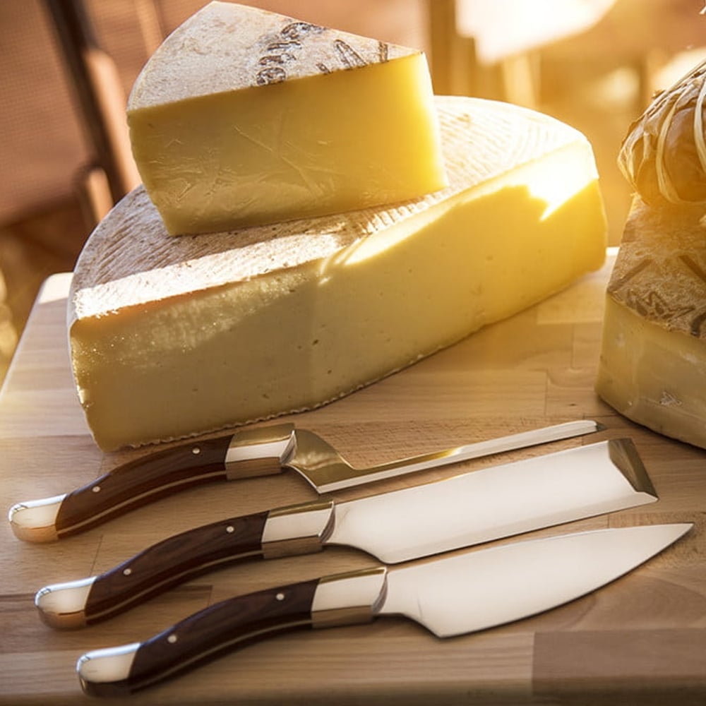 Setul include: cutit pentru crema de branza, cutit pentru branza tare si cutit pentru branza moale. Aceste produse au un finisaj artizanal si ofera eleganta si rafinament orcarei bucatarii.