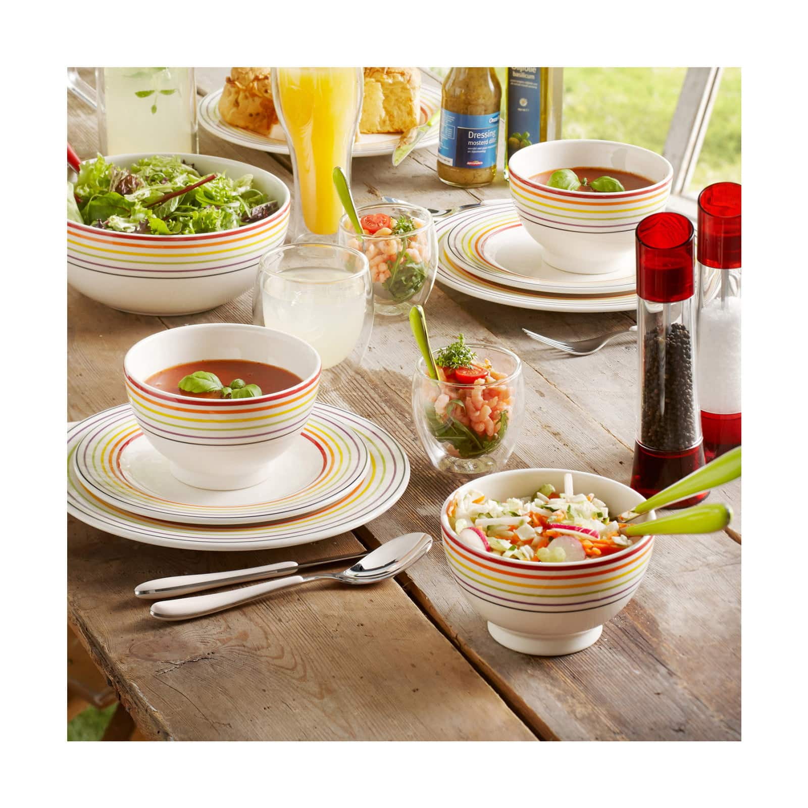 Aceasta colectie de tacamuri formata din 24 de piese de la prestigiosul brand italienesc este fabricata din otel inoxidabil de inalta calitate, fiind decorata cu accente colorate din ABS, pentru a da o nota vesela bucatariei dumneavoastre.