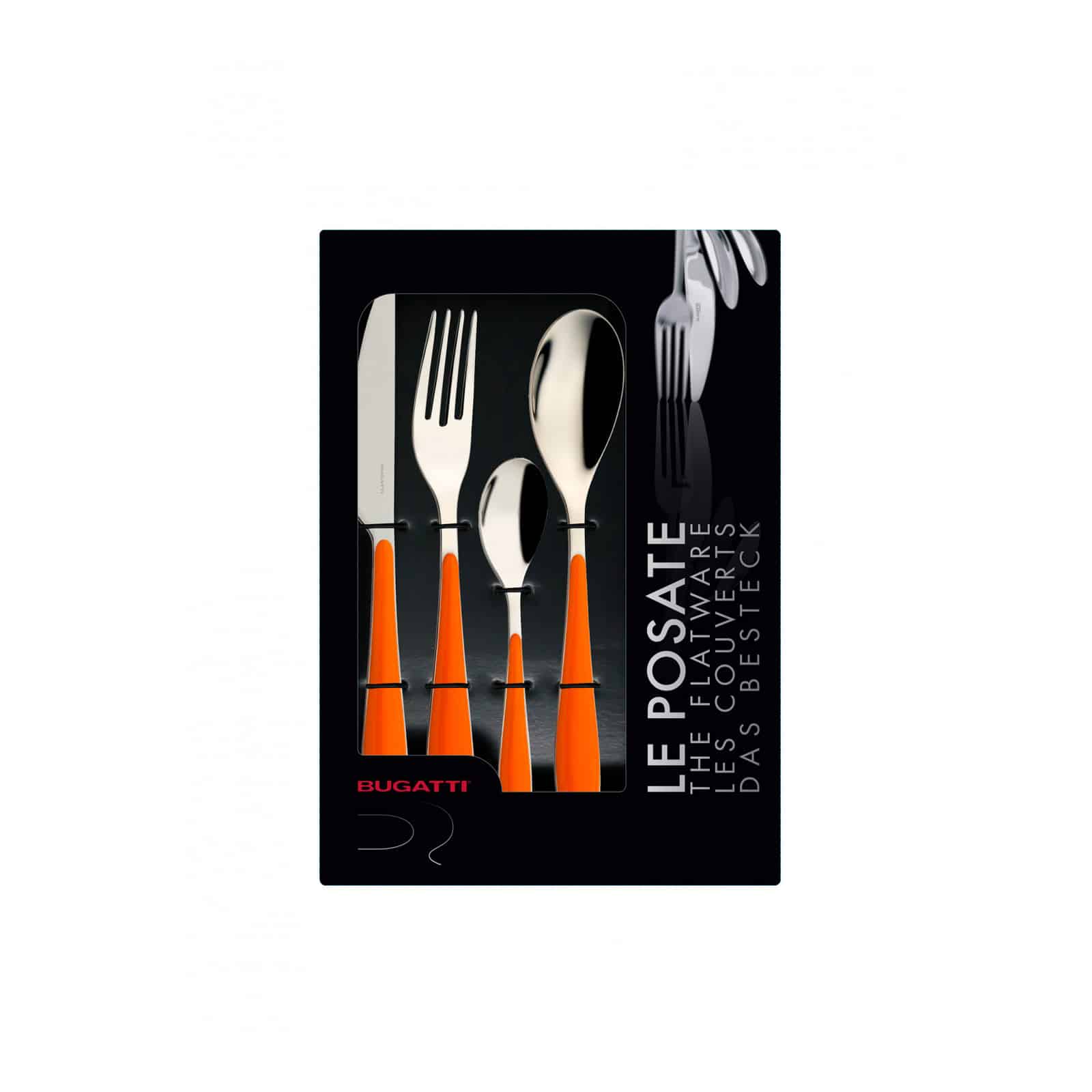 Exceptionalele tacamuri de la Casa Bugatti sunt cadoul ideal pentru persoanele dragi sau atunci cand doriti sa schimbati aspectul mesei dumneavoastra! Aceasta colectie de tacamuri formata din 24 de piese de la prestigiosul brand italienesc este fabricata din otel inoxidabil de inalta calitate, fiind decorata cu accente colorate din ABS, pentru a da o nota vesela bucatariei dumneavoastre. Fabricat din materiale premium de inalta calitate, setul Gioia vine acompaniat de o cutie de prezentare de lux.