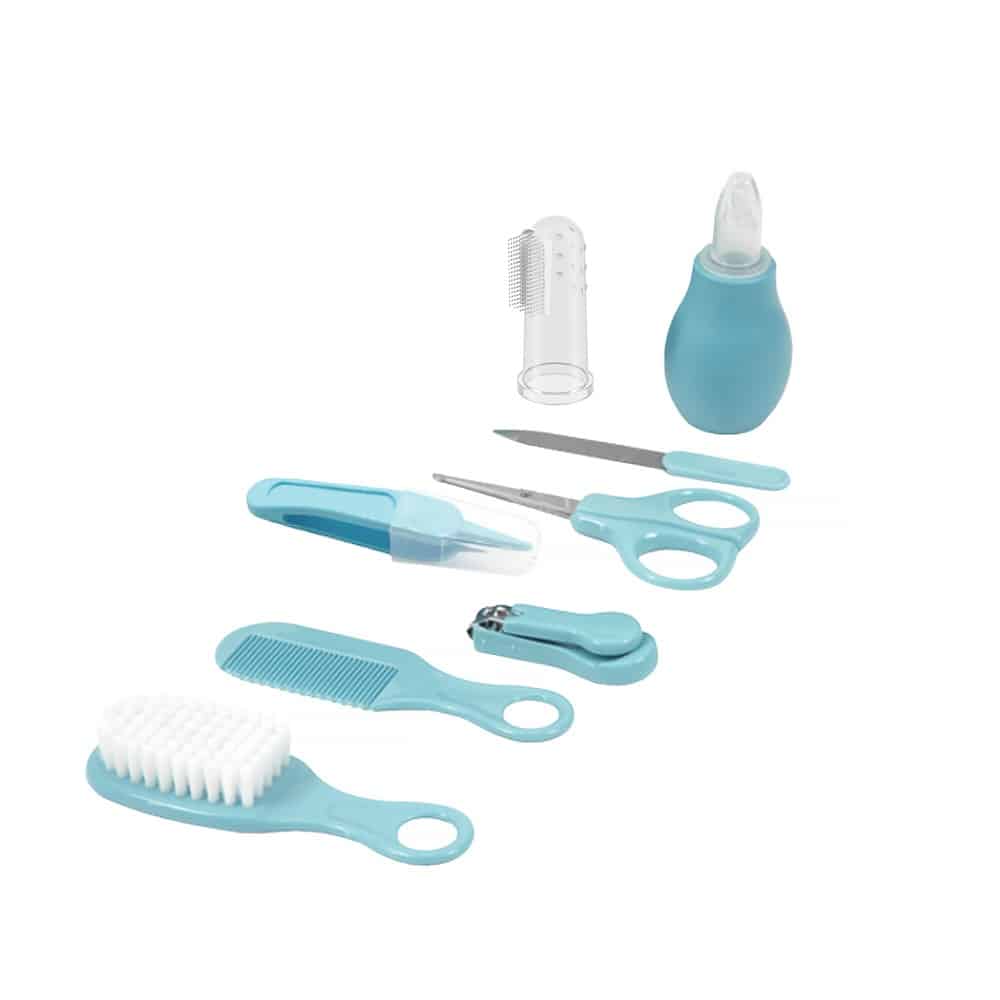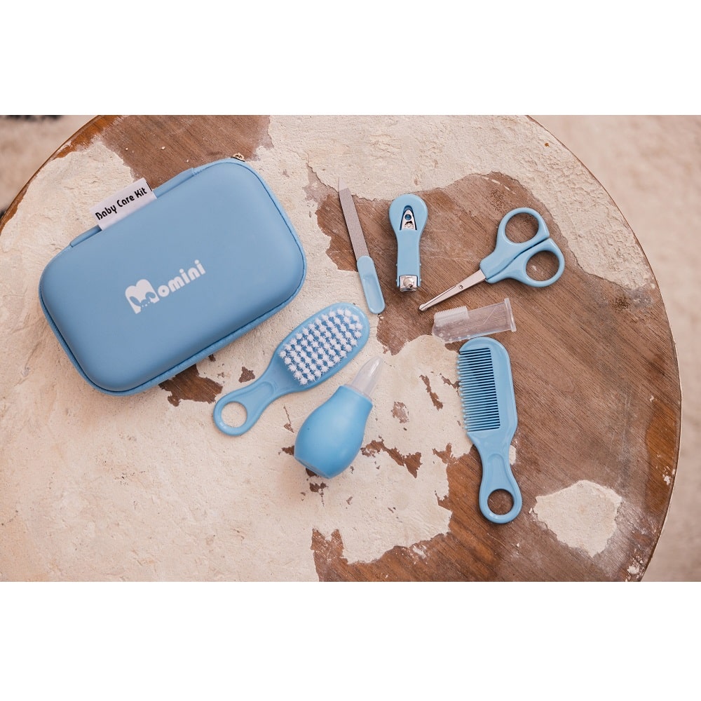 Setul de ingrijire Sky Baby, de la brandul polonez Momini, este o solutie completa pentru nou-nascuti si copii. Contine toate accesoriile necesare pentru cel mic, cum ar fi o perie de par, unghiera, forfecuta pentru unghii, pila, penseta, aspirator nazal si periuta de dinti, toate ambalate intr-un etui usor de transportat.