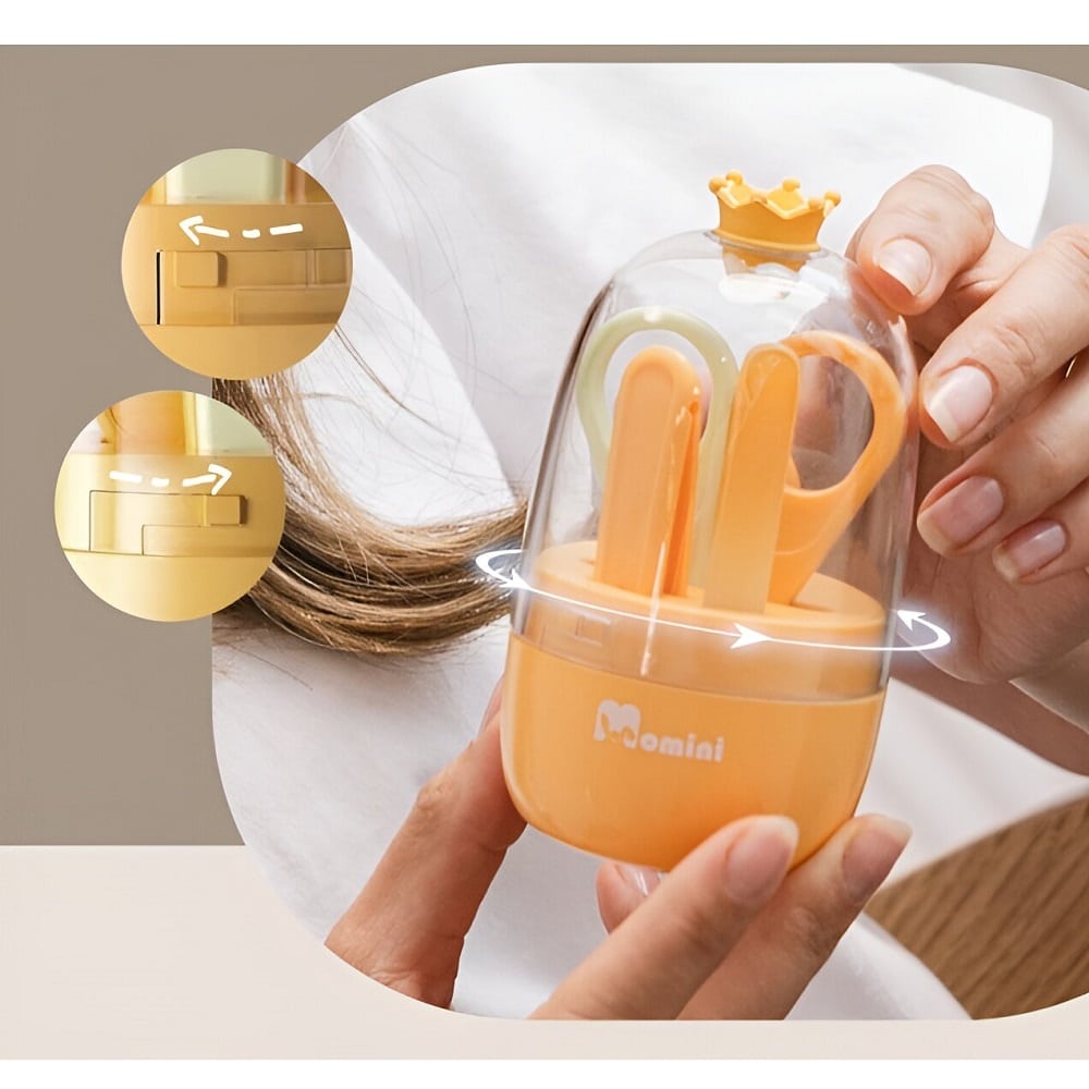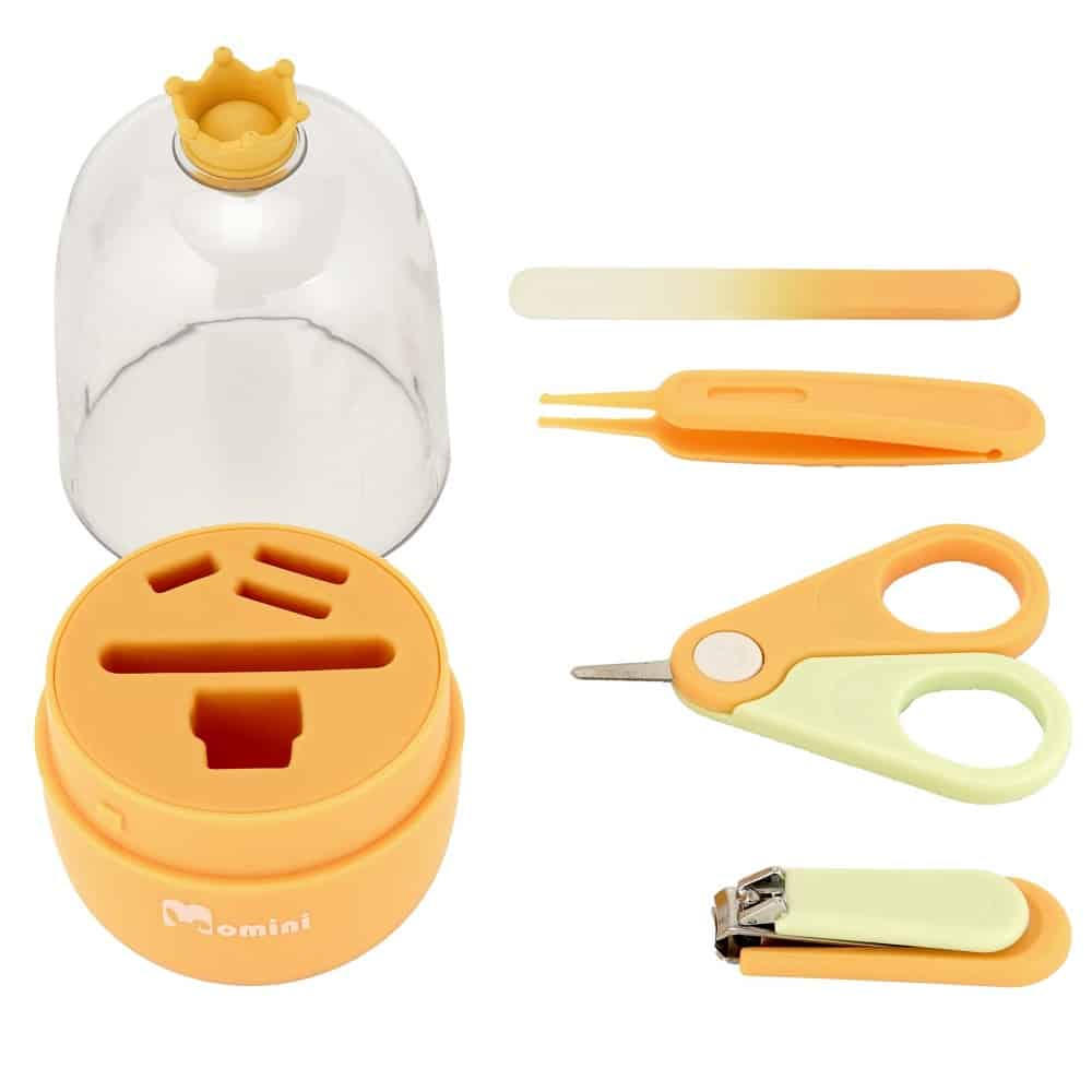 Setul de manichiura/pedichiura Sunny Baby, de la brandul polonez Momini, este tot ce ai nevoie pentru nou-nascuti si copii. Contine toate accesoriile necesare pentru ingrijirea unghiutelor celui mic, cum ar fi unghiera, foarfecuta, pila si penseta, toate ambalate intr-un suport usor de depozitat/transportat.