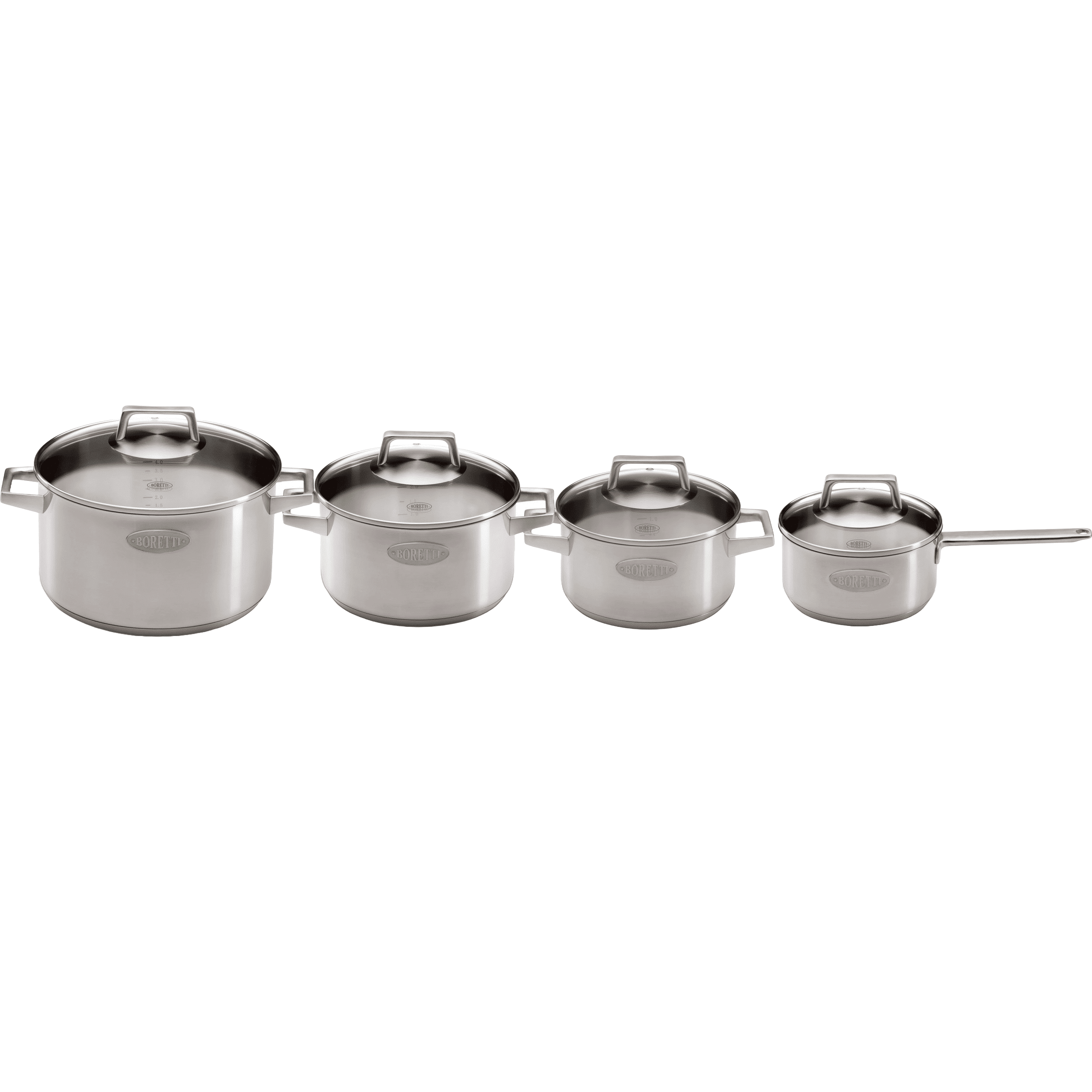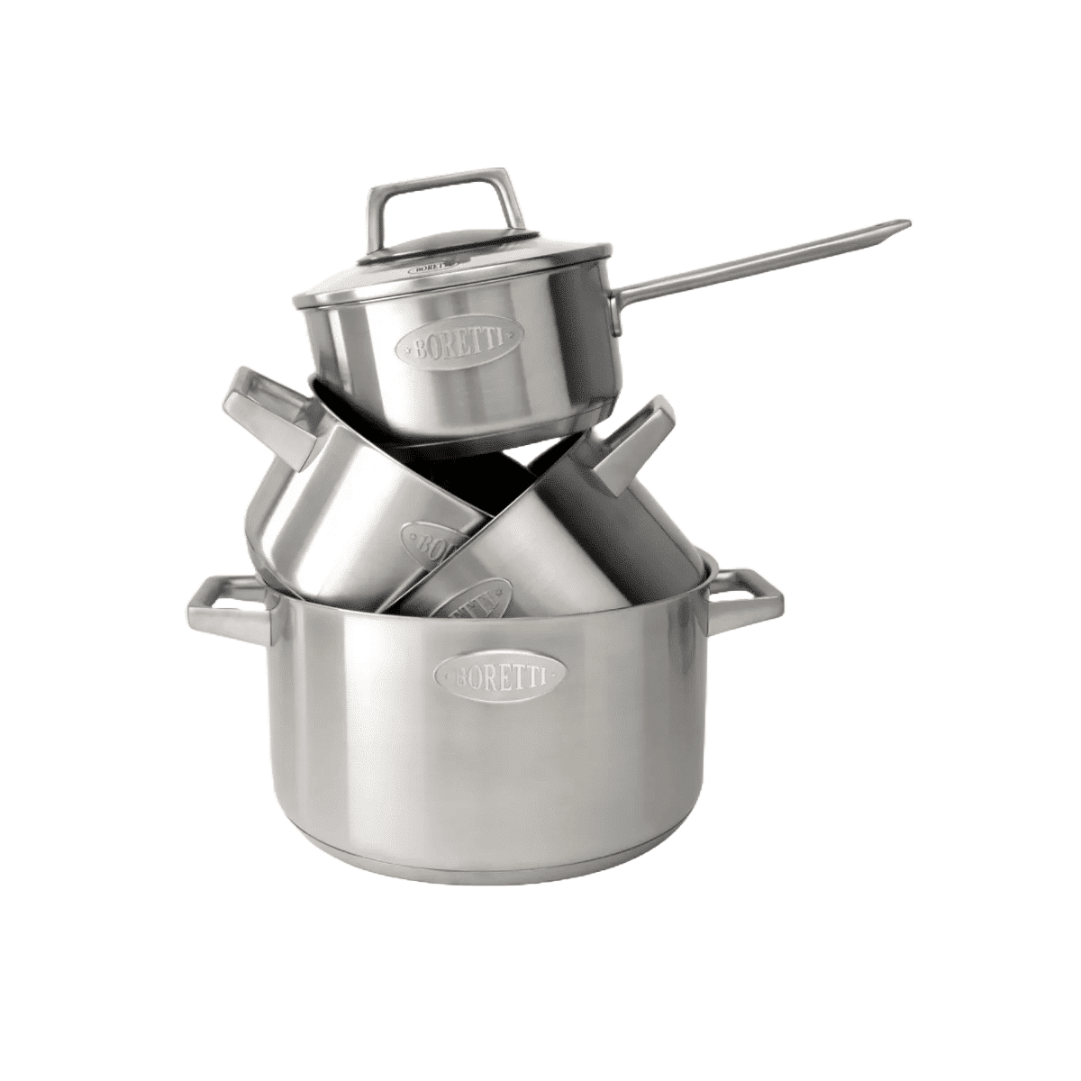 Gatiti orice fel de mancare pentru o persoana sau intreaga familie cu setul Pentola de la Boretti care include 4 oale cu capac de dimensiuni diferite.