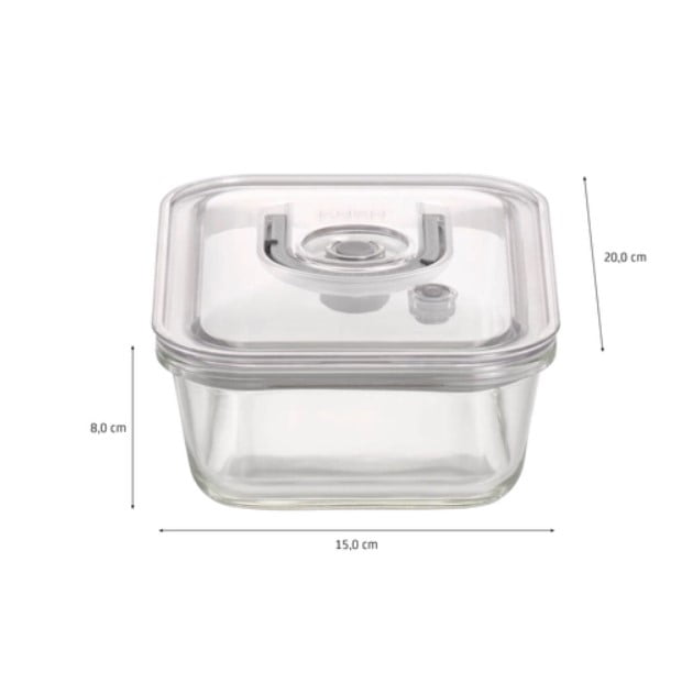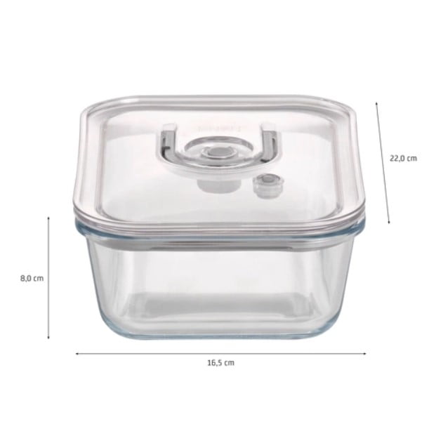 Transparente, compacte si reutilizabile, recipientele pot fi folosite atat in cuptor (fara capac!) cat si in frigider/congelator datorita vidului de lunga durata ce este pastrat cu ajutorul supapei de vid si garniturii din silicon. Bolurile, fabricate din sticla rezistenta, sunt compatibile cu masina de spalat vase.