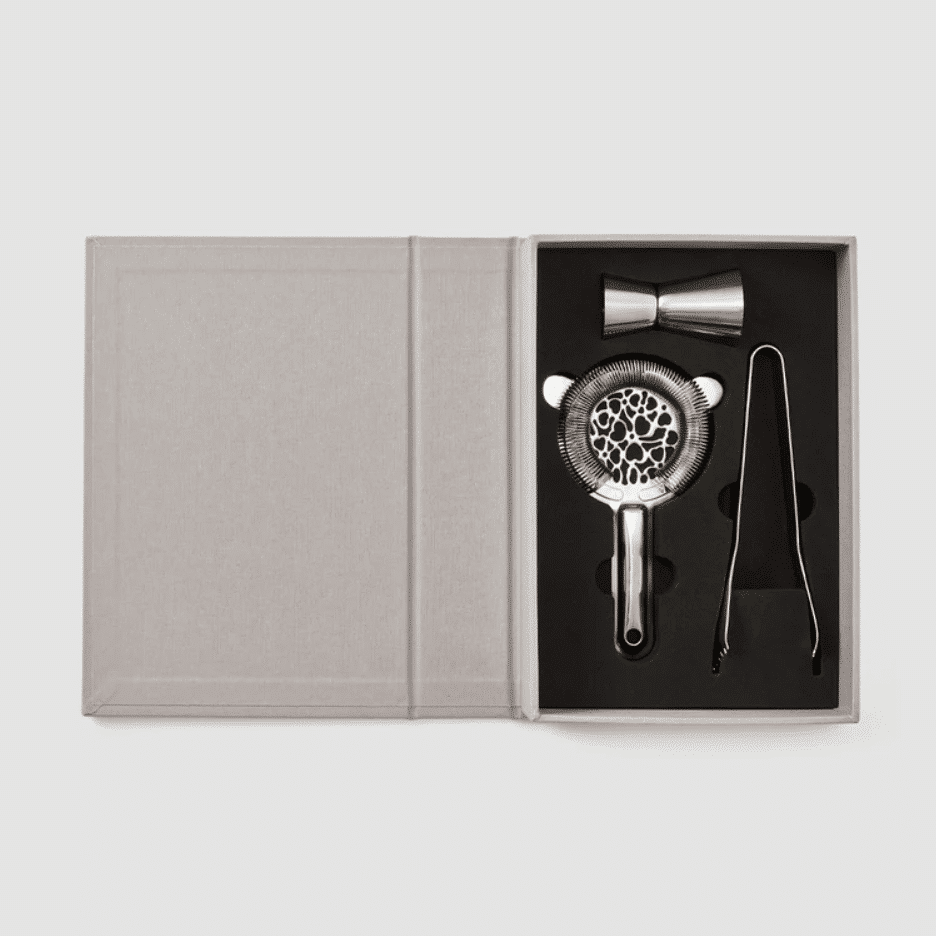 Iti prezentam setul Cocktail de ustensile pentru bauturi, ambalate intr-o cutie rafinata, asemanatoare unei carti pentru masuta de cafea. In interior, vei gasi trei accesorii potrivite pentru crearea unor cocktailuri de exceptie. Ustensilele sunt fabricate din otel inoxidabil si pot fi curatate la masina de spalat vase.