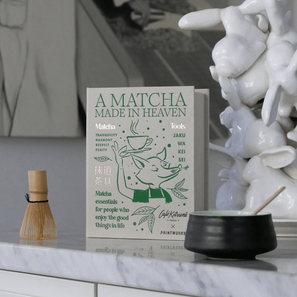 Imbinand cunostintele Café Kitsuné despre cultura japoneza a ceaiului matcha cu estetica de design semnatura PRINTWORKS, acest kit iti va eleva ritualul ceaiului.