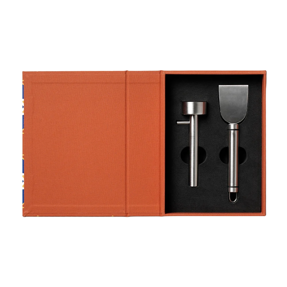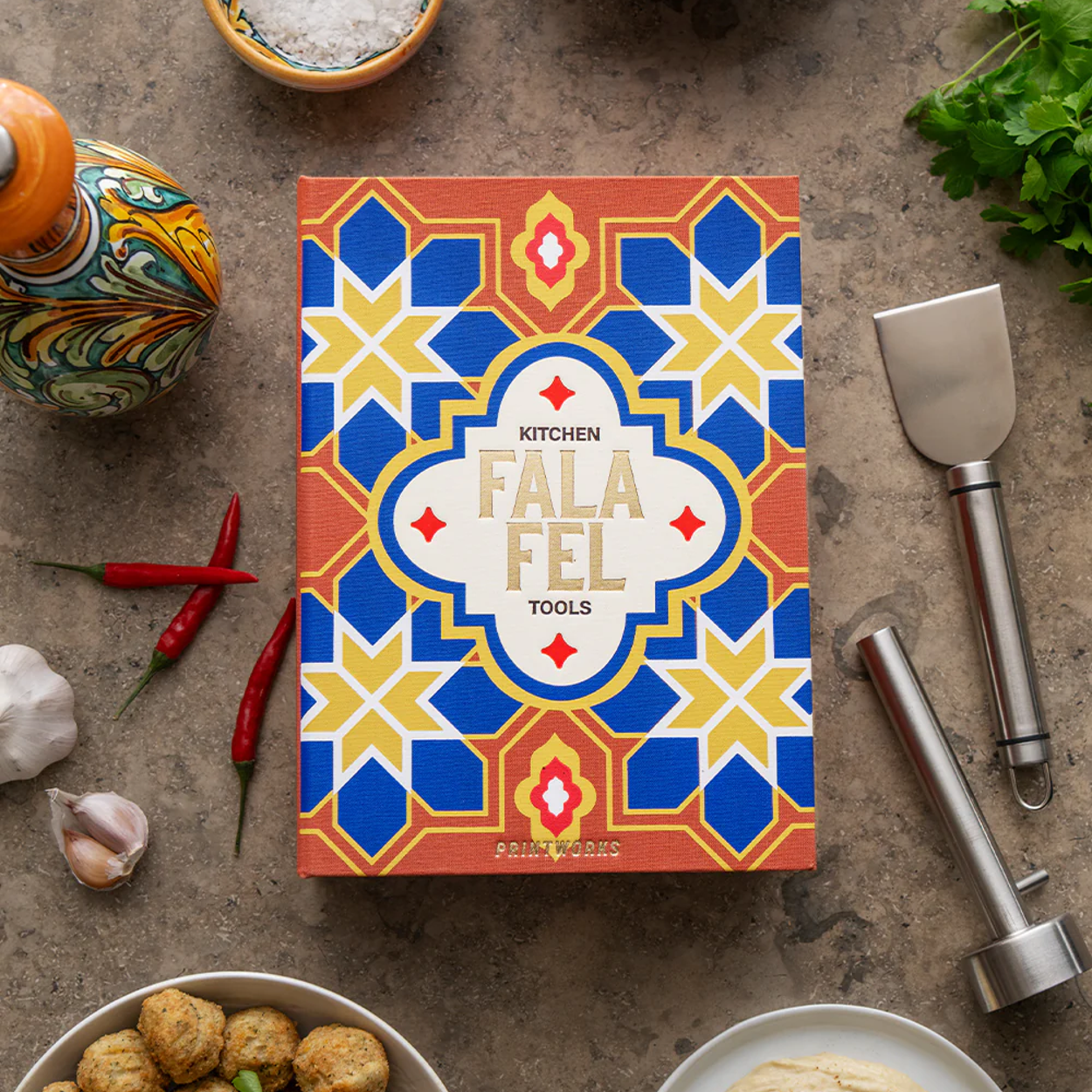 Setul cu ustensile pentru falafel, ambalat intr-o cutie rafinata, eleganta, asemnatoare unei carti moderne pentru masuta de cafea sau pentru mobila din bucatarie este ideal atat pentru a iti usura modul in care faci falafel, pentru decorarea unei incaperii, cat si pentru a il face cadou.