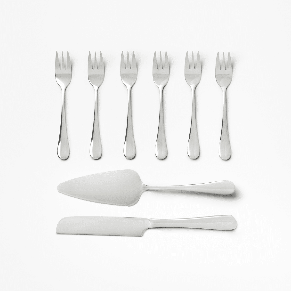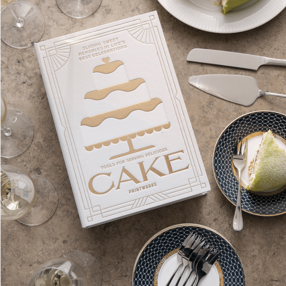 Iti prezentam setul de ustensile Cake pentru servirea tortului, ambalate intr-o cutie rafinata, asemanatoare unei carti pentru masuta de cafea. In interior, vei gasi 8 piese ce te vor ajuta sa tai tortul si sa il servesti familiei si invitatilor. Instrumentele sunt fabricate din otel inoxidabil si sunt ideale pentru a fi oferite cadou!