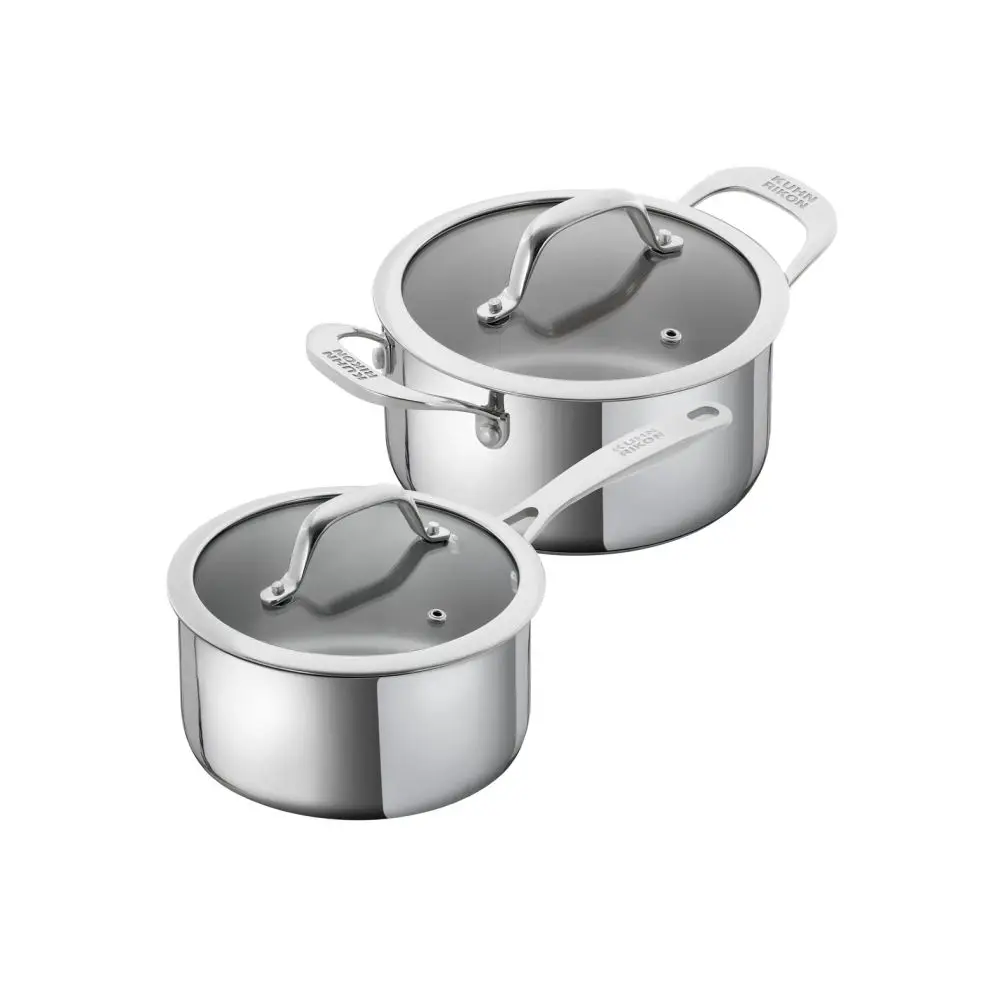 Setul Allround de vase de bucatarie este elegant, util si durabil, fiind fabricat din otel inoxidabil de inalta calitate, pentru ca tu sa gatesti cu drag si spor. Setul iti asigura strictul necesar in bucatarie cu oala incapatoare (Ø 18 cm) si cratita ideala pentru sosuri (Ø 16 cm) din colectia Allround.