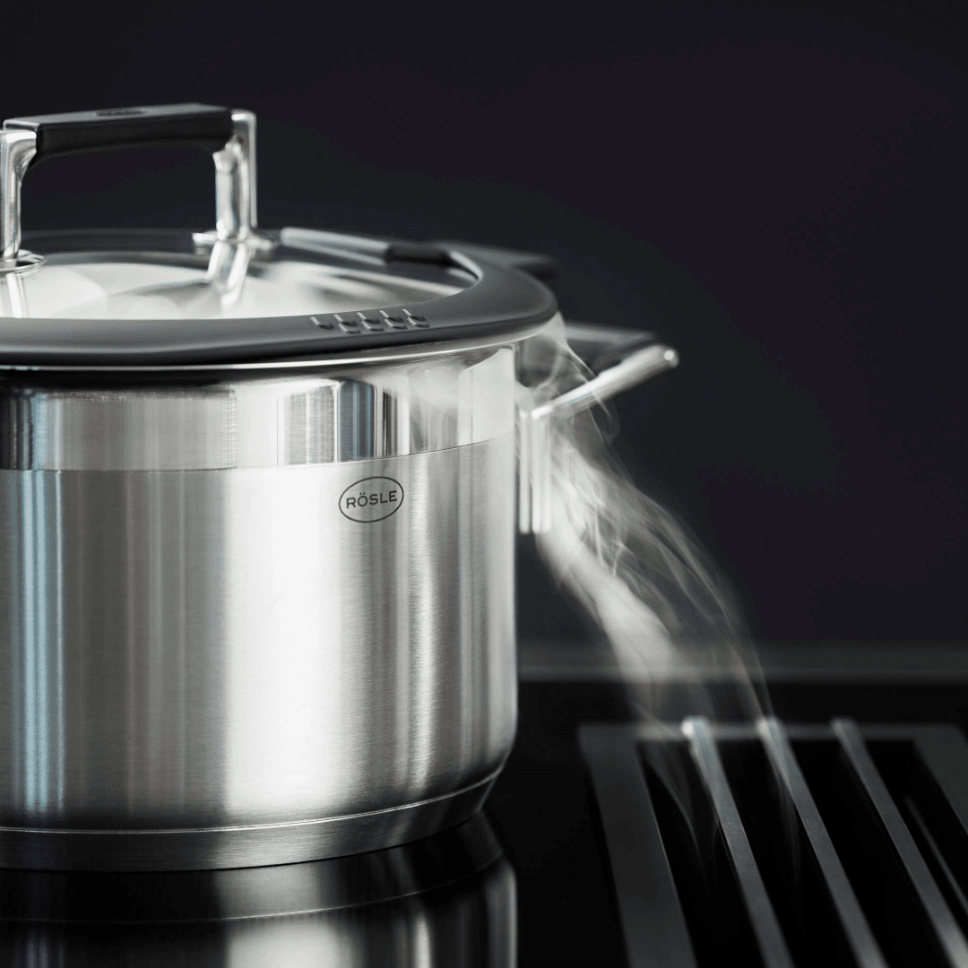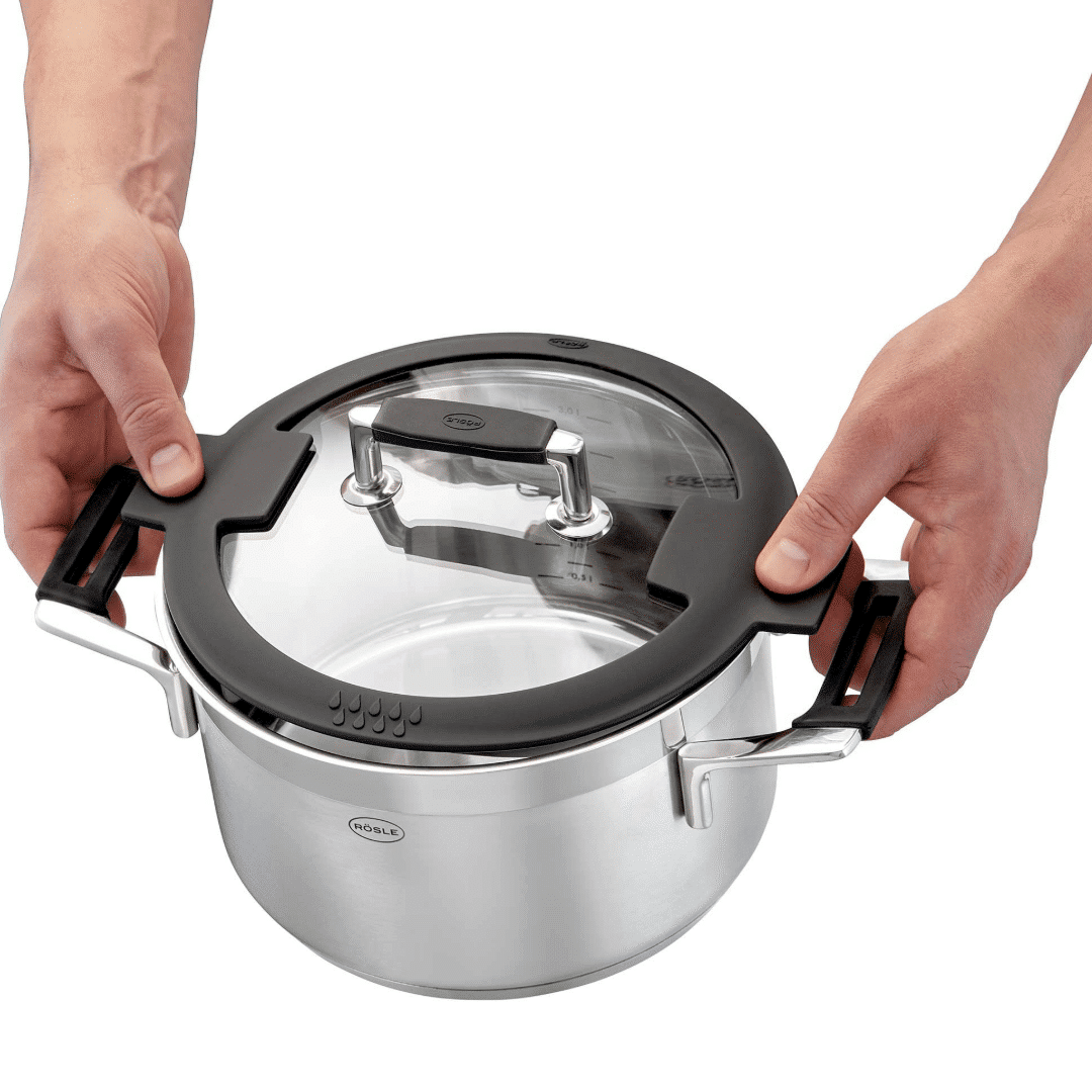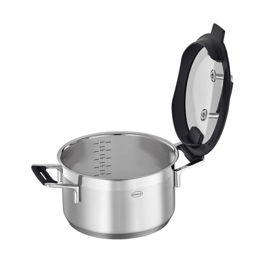 Setul de vase pentru gatit Silence Pro, de la Rösle, este folosit de bucatari profesionisti deoarece este fabricat din materiale de calitate premium, este rezistent la socuri, solid, foarte usor de utilizat si curatat, iar punctul forte este ca poate fi utilizat pe orice sursa de caldura, inclusiv plitele cu inductie.