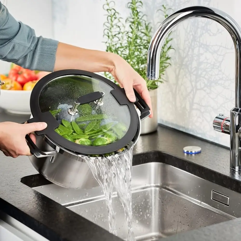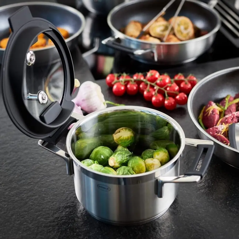 Manerele rezistente sunt create pentru o prindere usoara, practica, iar capacul este din silicon si sticla termorezistenta, care va permite sa monitorizati preparatele in timp ce se gatesc.
