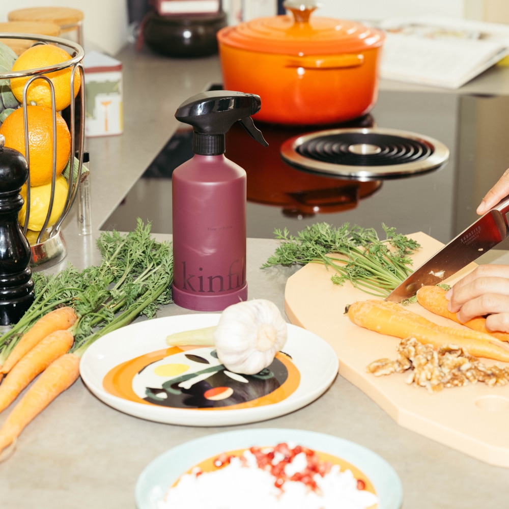 Solutia de curatare pentru bucatarie Ambrette, de la Kinfill, curata si igienizeaza suprafetele precum plite, hote, blaturi, gresie sau faianta, avand un miros elegant, lemnos, ce iti va invalui bucataria.