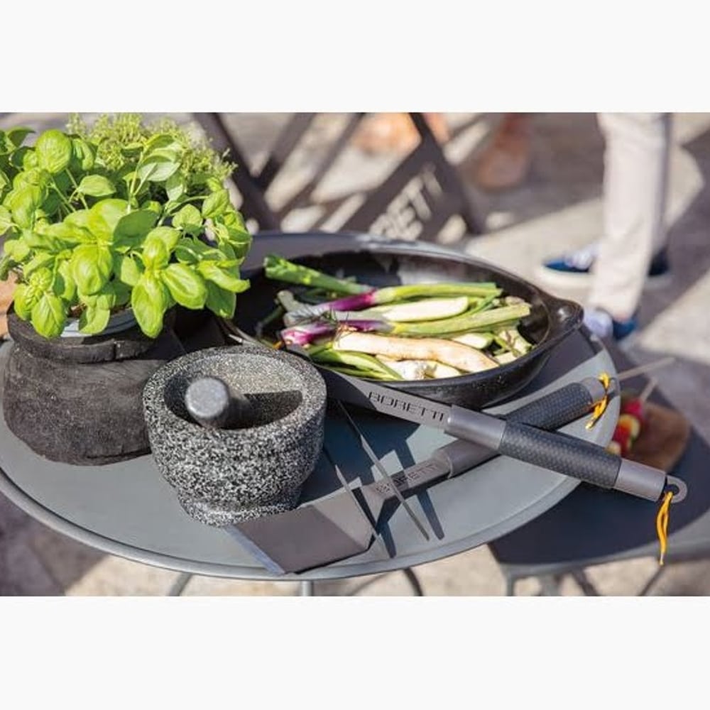 Realizata pentru a se potrivi cu gama Charcoal de la Boretti, spatula pentru gratar are finisajul industrial familiar, antracit mat si o prindere ferma, multumita manerului ergonomic din otel inoxidabil, rezistent la trecerea anilor. Spatula este ideala pentru manipularea fripturii, legumelor, frigaruilor etc.