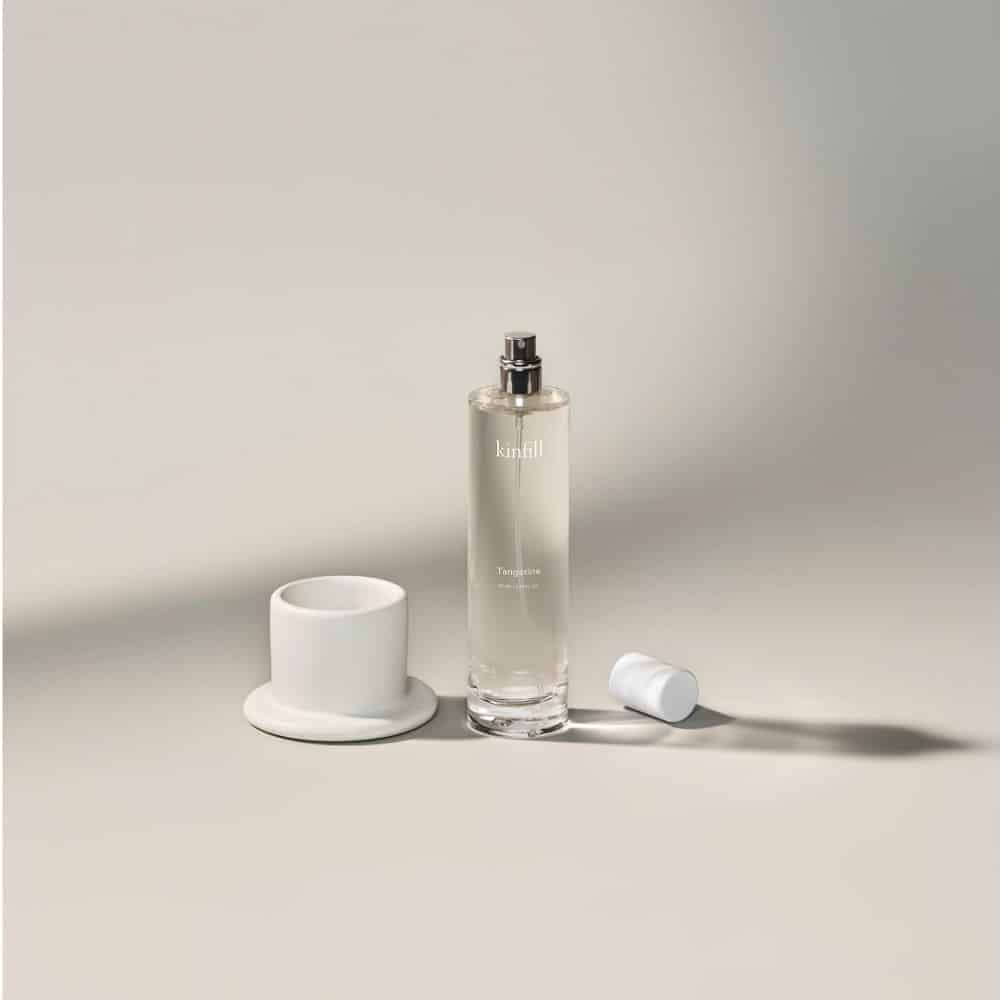 Infuzat cu note de neroli, bergamota, floare de portocal, ylang-ylang si mosc floral, spray-ul odorizant de camera Tangerine, de la Kinfill, reimprospateaza aerul din orice spatiu din casa. Aceasta formula sigura (din ingrediente 100% biodegradabile), fabricata in Tarile de Jos, este pastrata intr-un recipient din sticla si un suport din ceramica.