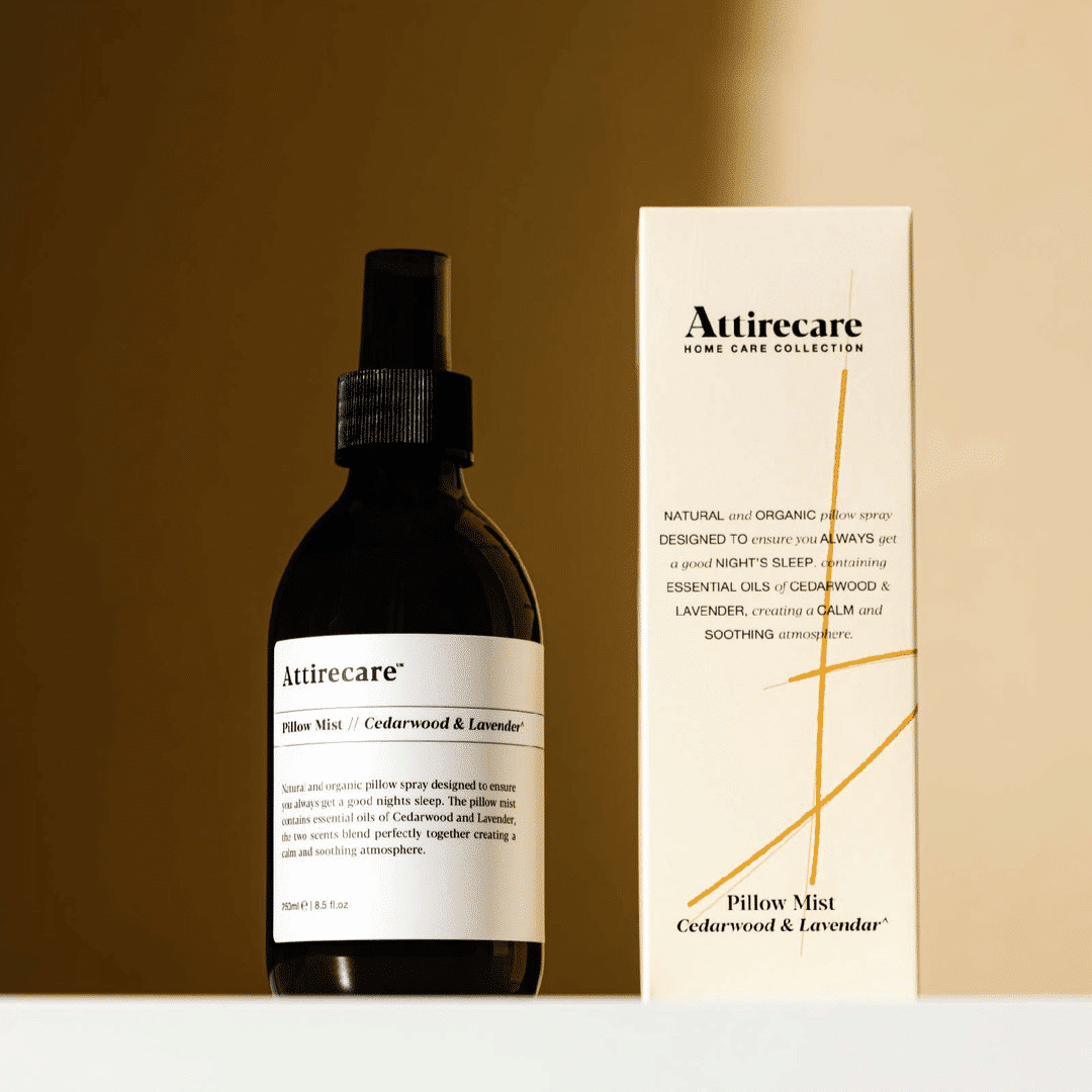 Integreaza spray-ul Pillow Mist, de la Attirecare, in rutina ta de noapte. Imbinarea unui amestec de uleiuri esentiale de lemn de cedru si lavanda va crea o senzatie de calm in timp ce te va transpune intr-o atmosfera linistitoare inainte de somn.