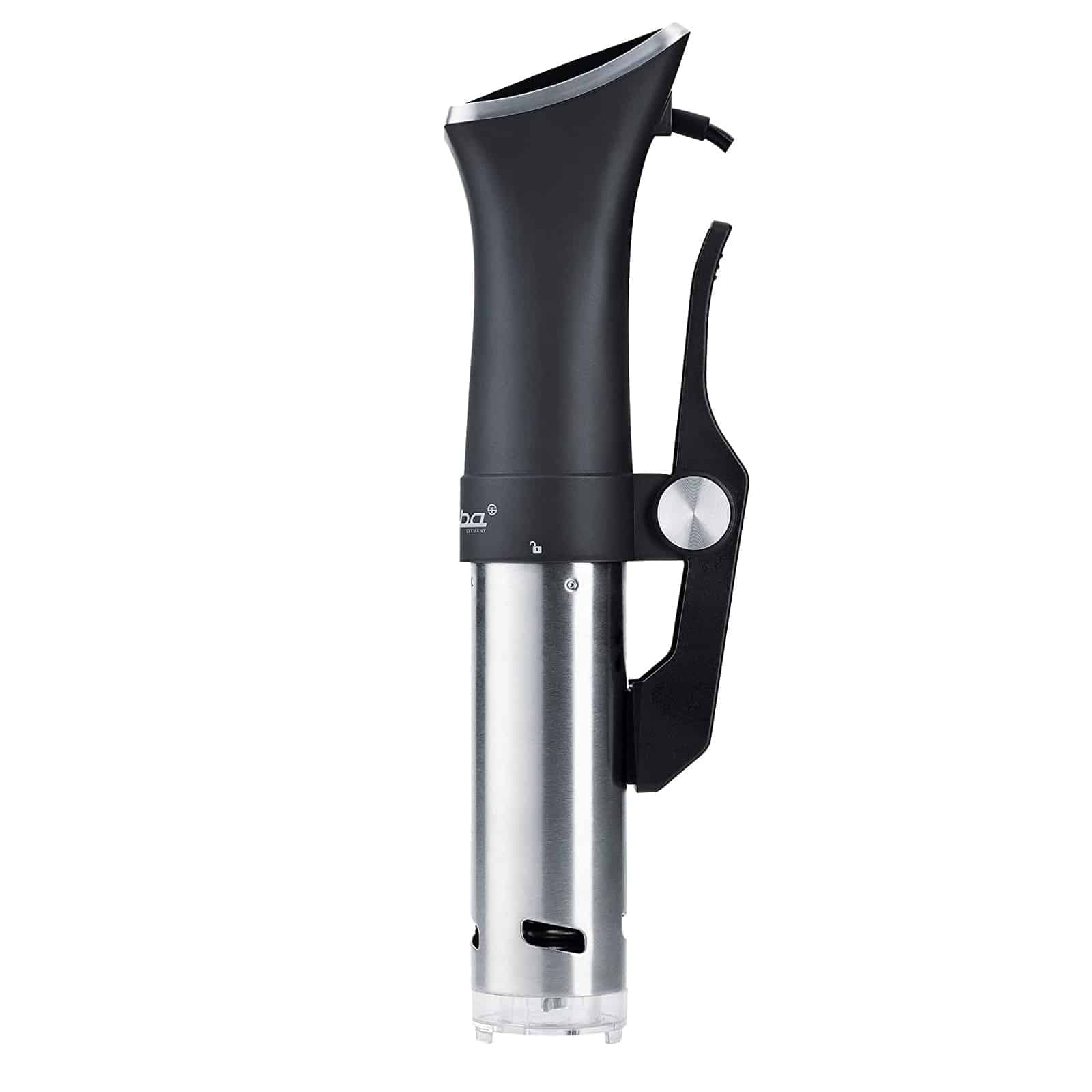 Cu dispozitivul de agatare flexibil, puteti folosi stick-ul pentru a gati sous vide, in toate recipientele termorezistente cu o inaltime de pana la 15 cm.
