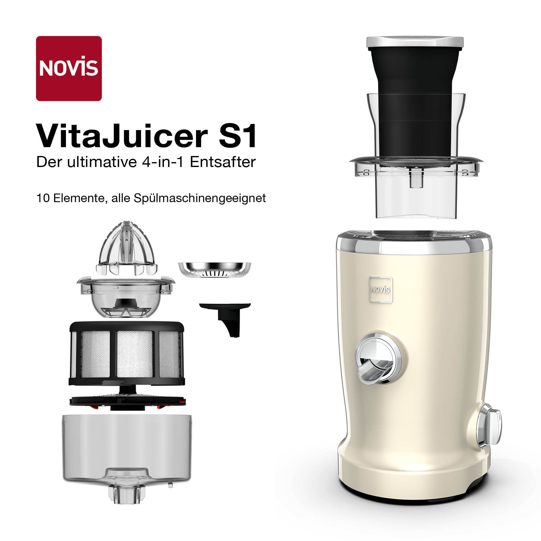 Storcatorul VitaJuicer S1 de la Novis este fabricat folosind cea mai noua tehnologie elvetiana. Culoarea vibranta a storcatorului 4in1 il va face piesa de rezistenta din bucataria dumneavoastra!
