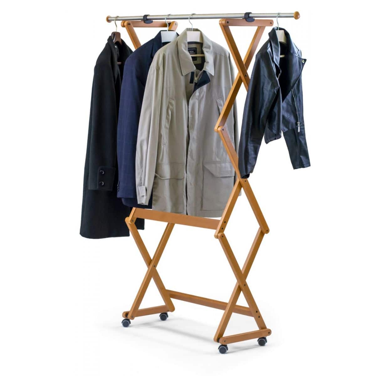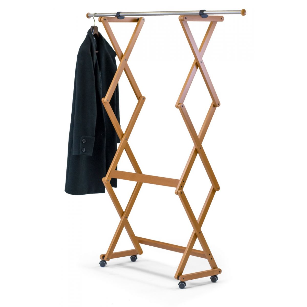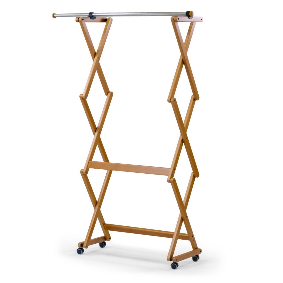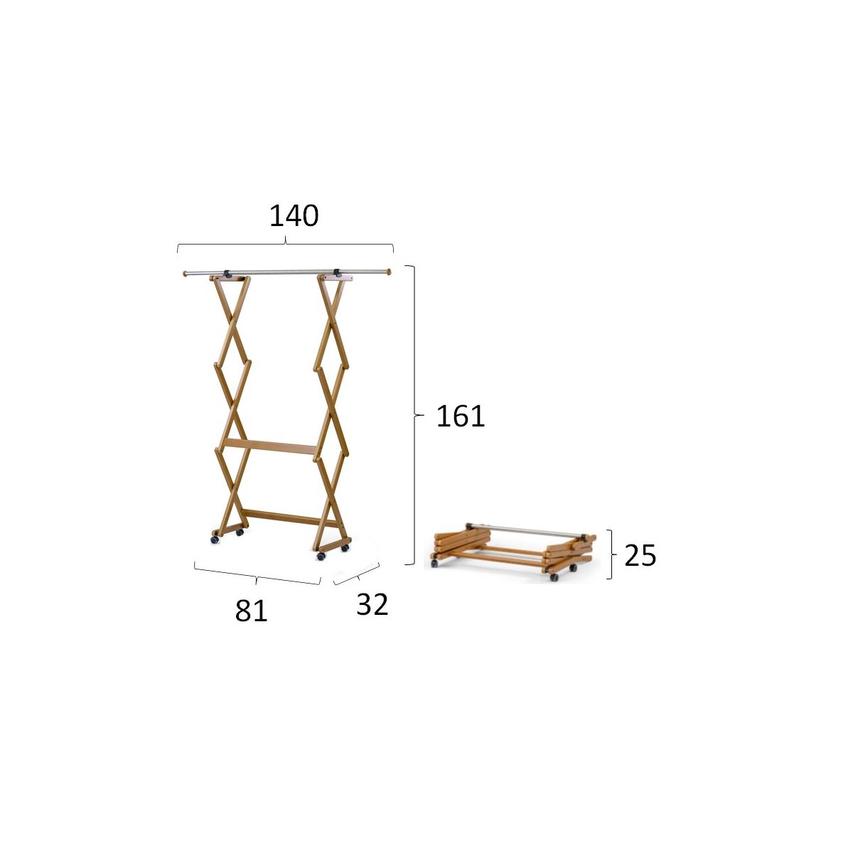 Avand o structura din lemn masiv de fag, suportul de umerase pliabil Felix este destinat utilizarii zilnice, iar sistemul de pliere este foarte rapid si usor, ajungand la o inaltime de doar 25 de centimetri. Suportul de umerase dispune de o bara extensibila pana la 140 cm.