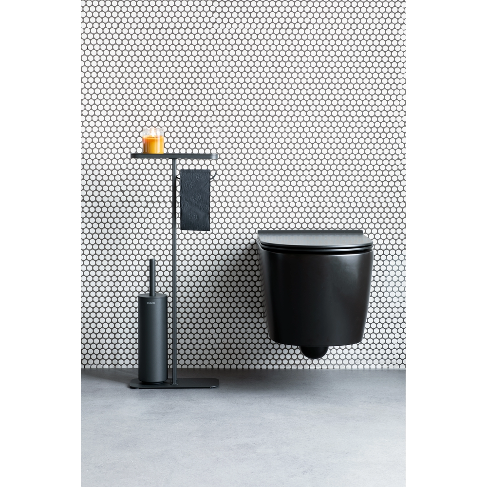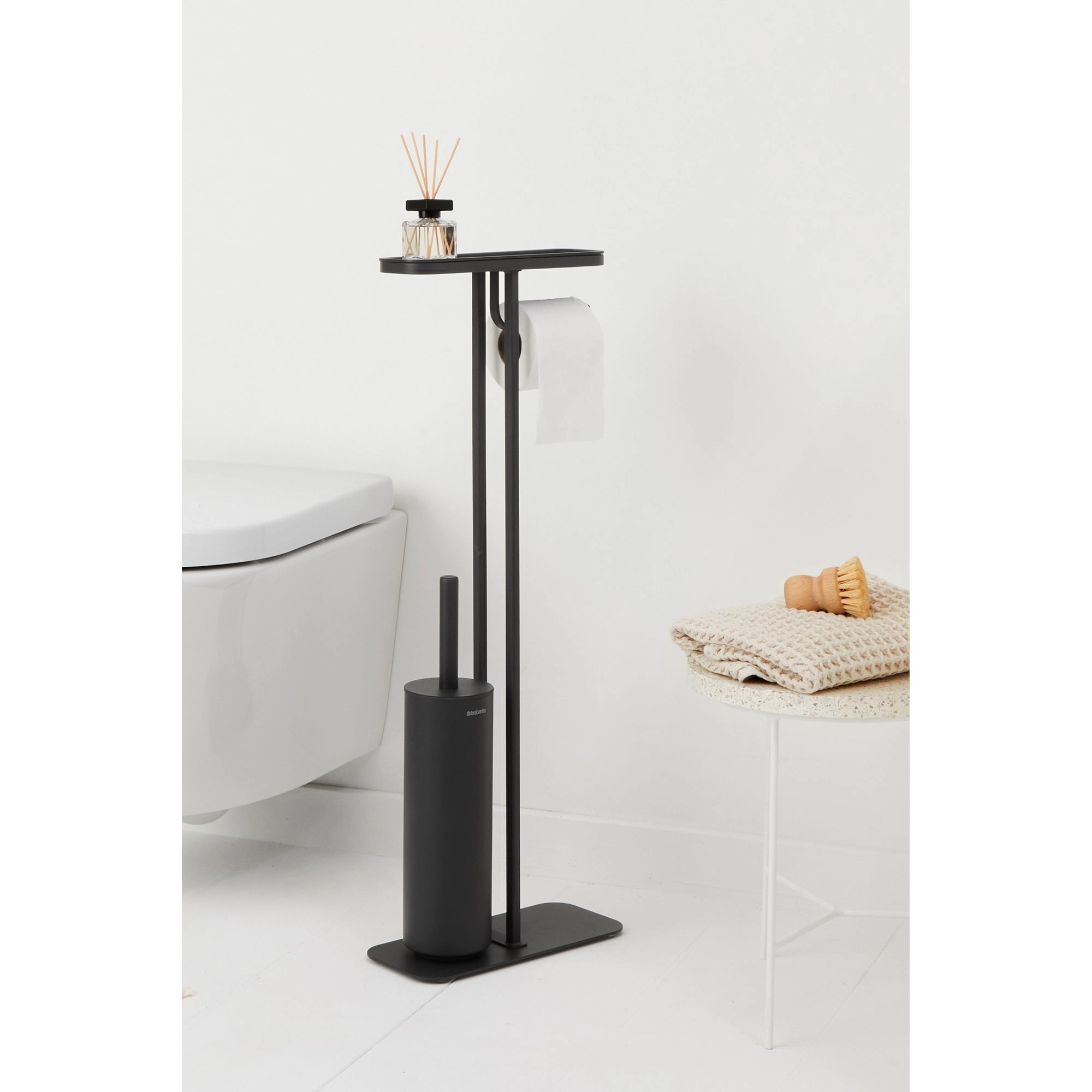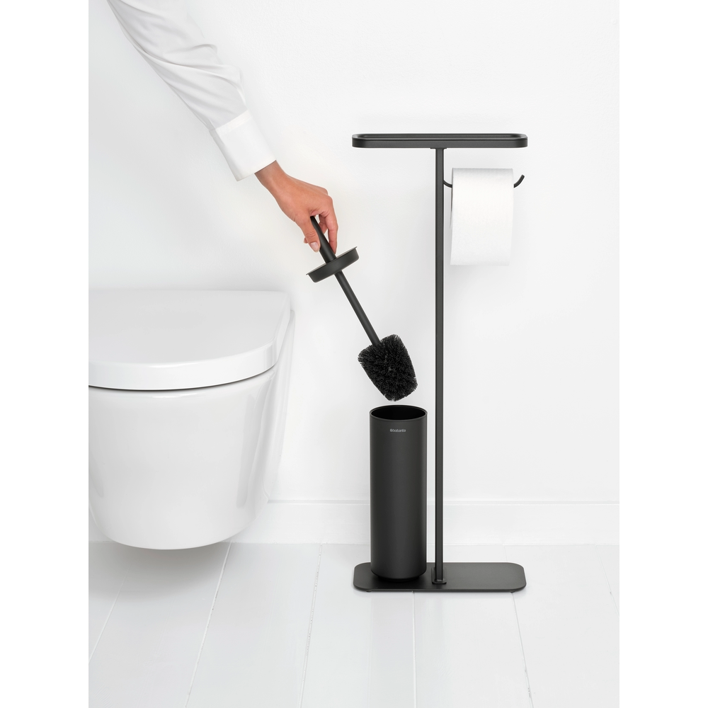Setul de la Brabantia contine perie de toaleta cu suport, compartiment pentru hartie igienica si suport pentru hartia igienica.