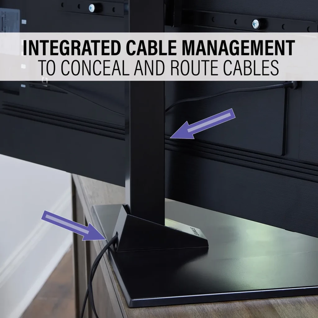 Suportul iti permite sa ascunzi cablurile inestetice pentru un aspect curat si ordonat.