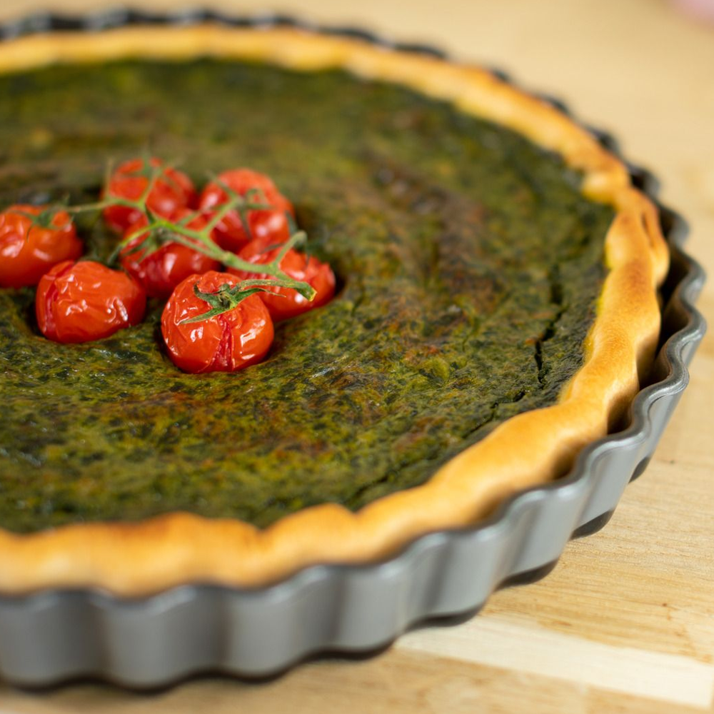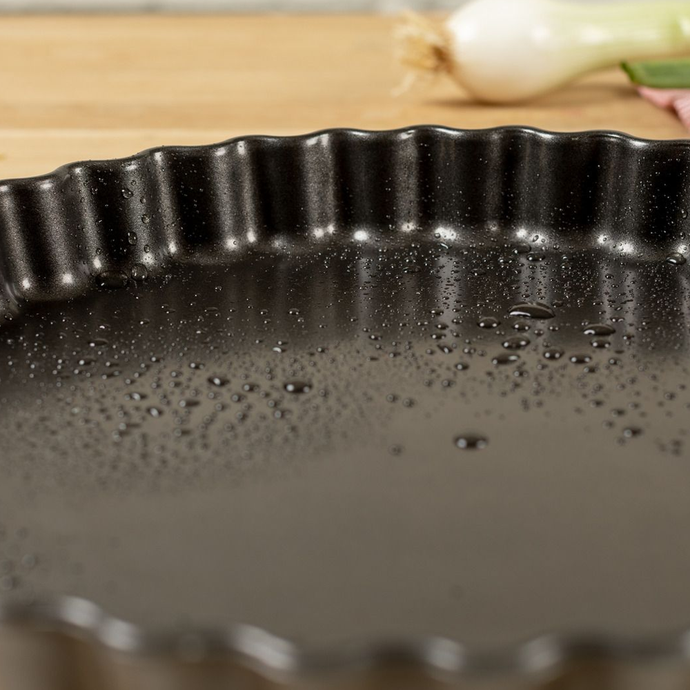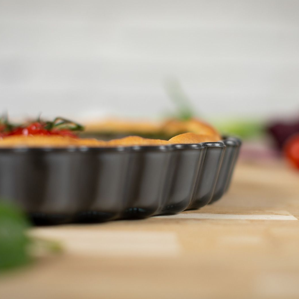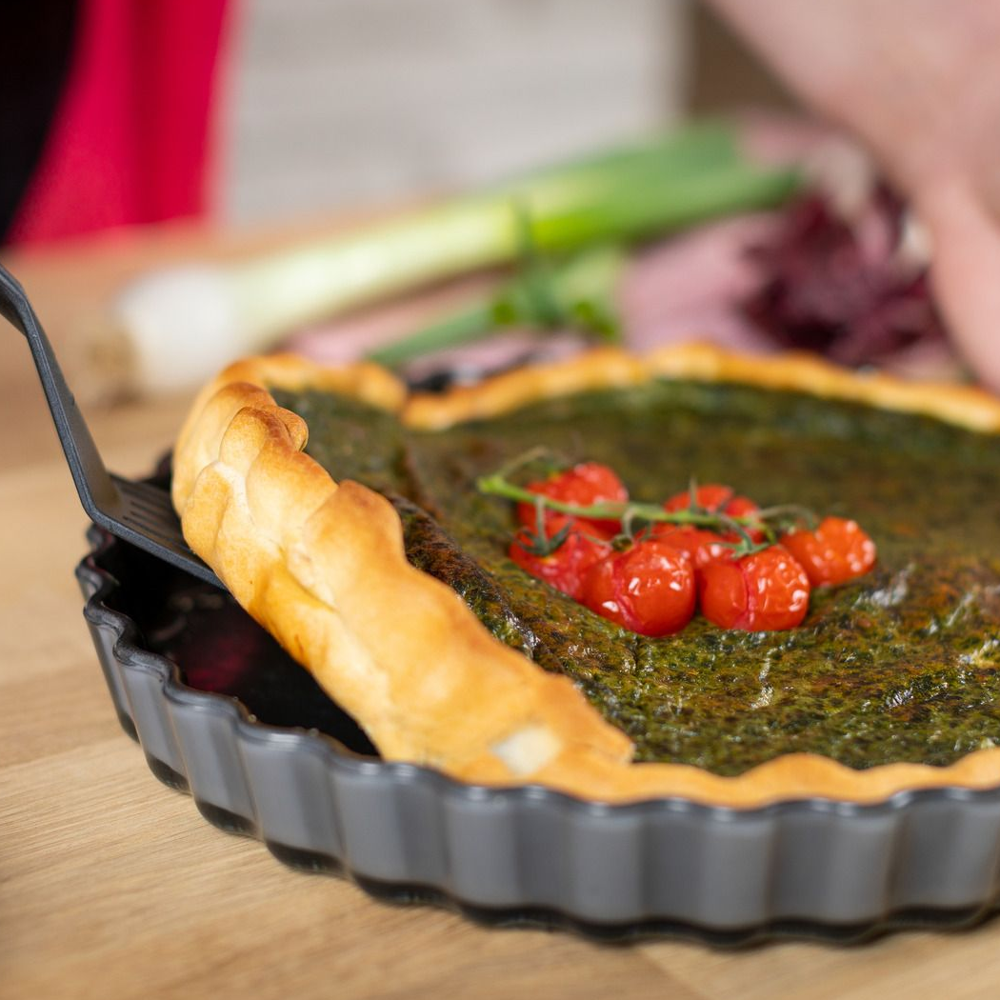 Tava pentru tarte, de la brandul elvetian Kuhn Rikon, este ideala pentru pasionatii de gatit ce vor sa pregateasca tarte fine, dar si quiche traditional.