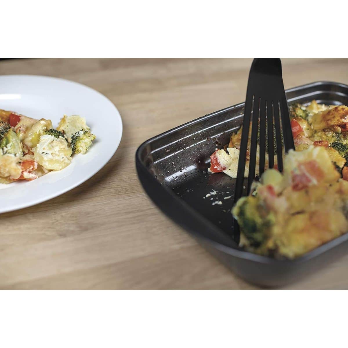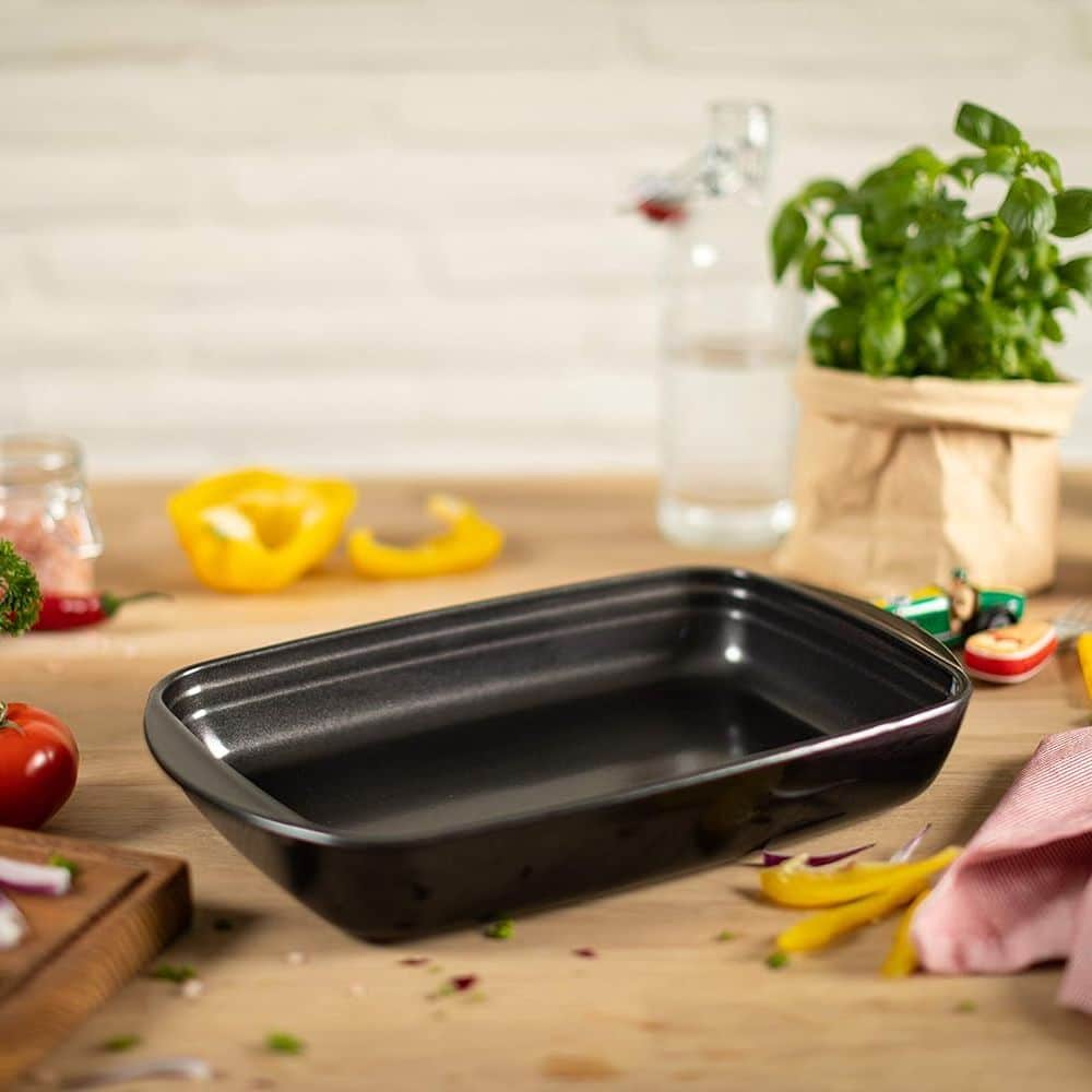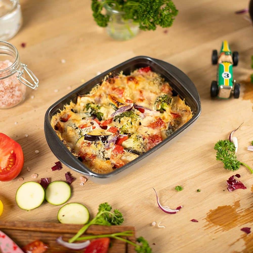 Vasul pentru cuptor, de la brandul elvetian Kuhn Rikon, este realizat din sticla borosilicata de inalta calitate, oferind o multitudine de optiuni de gatire, de la paste gratinate, ghiveci de legume pana la prajituri si multe altele. Datorita stratului antiaderent, recipientul este extrem de usor de curatat.