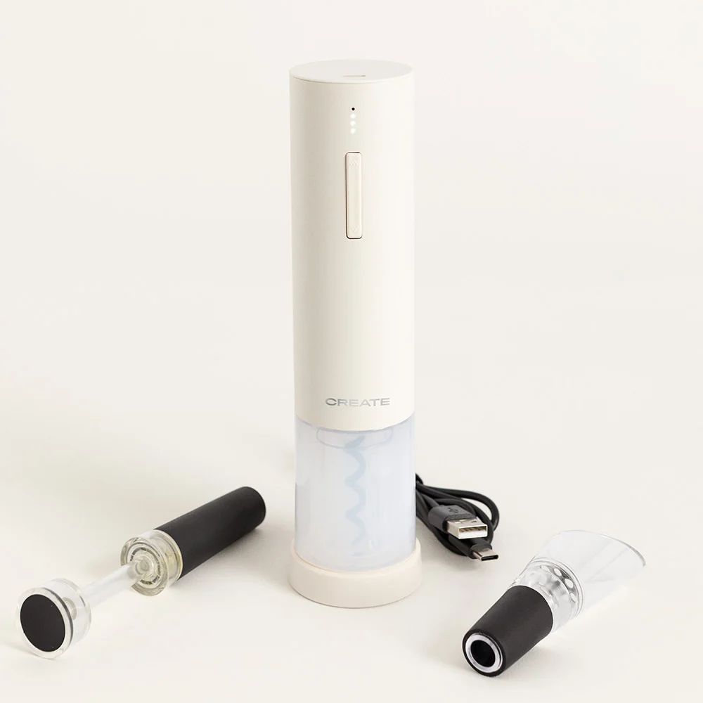Tirbusonul electric pentru vin, de la brandul spaniol CREATE, iti va veni in ajutor oricand vei dori sa deschizi o sticla de vin, fara efort!