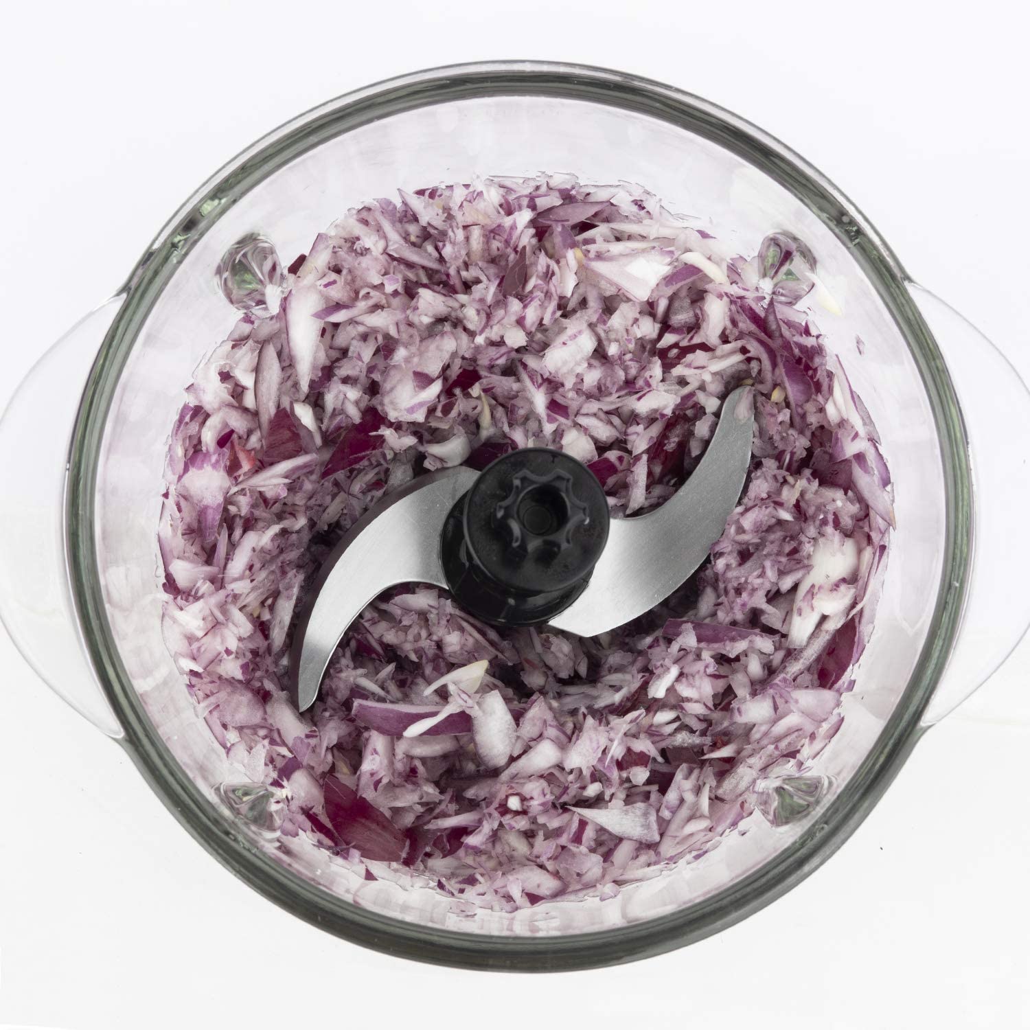 Puterea sa de 320 W si lamele din otel inoxidabil asigura o taiere eficienta si sigura. Practic si usor de utilizat avand recipientul de 1 litru cu o capacitate de tocare de 500 ml.
