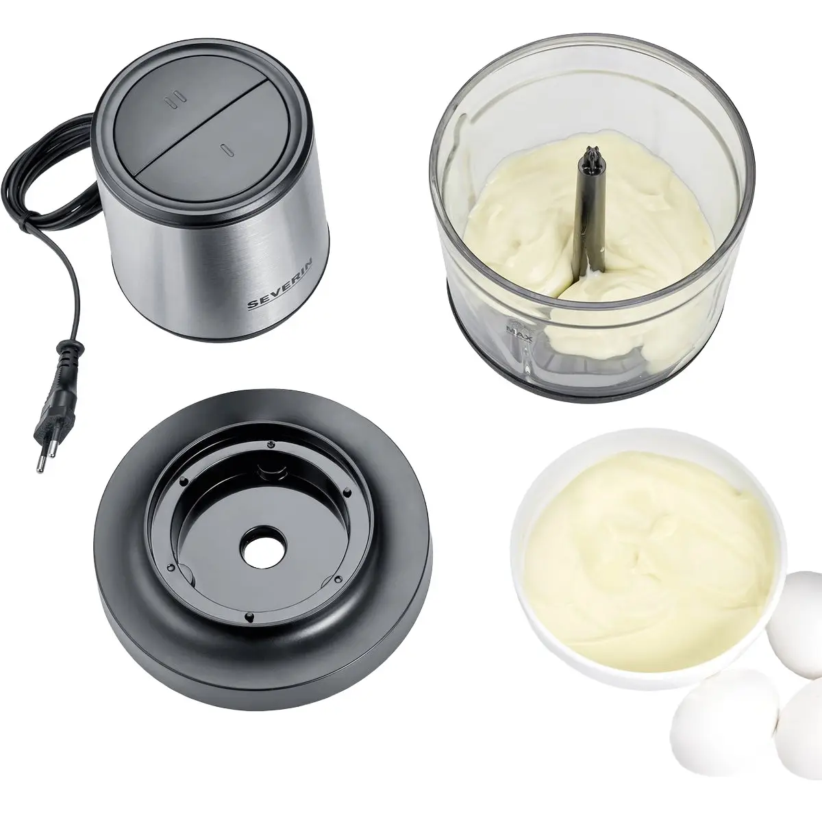 Tocatorul electric Severin este un produs de nelipsit in bucataria ta daca vrei sa pregatesti alimente rapid, eficient si fara efort. Produsul ofera cele mai bune rezultate de taiere datorita lamelor din otel inoxidabil cu 4 cutite, dispuse pe doua niveluri.